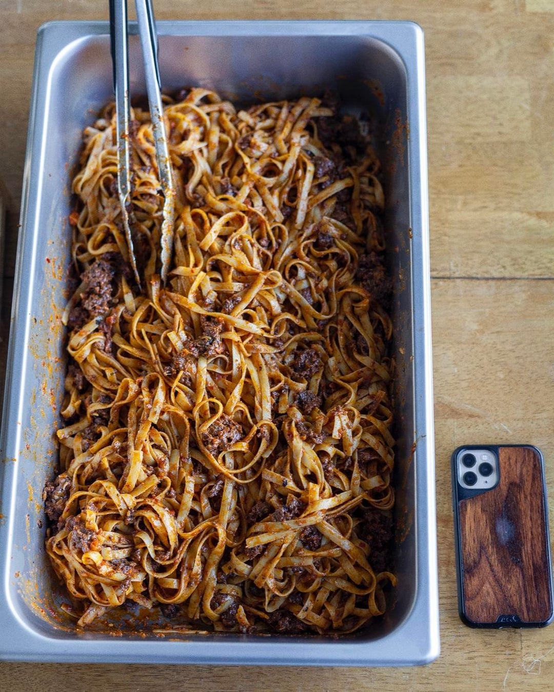 [homemade] an entire pan of pork & veal ragu i made for a party. phone for scale.