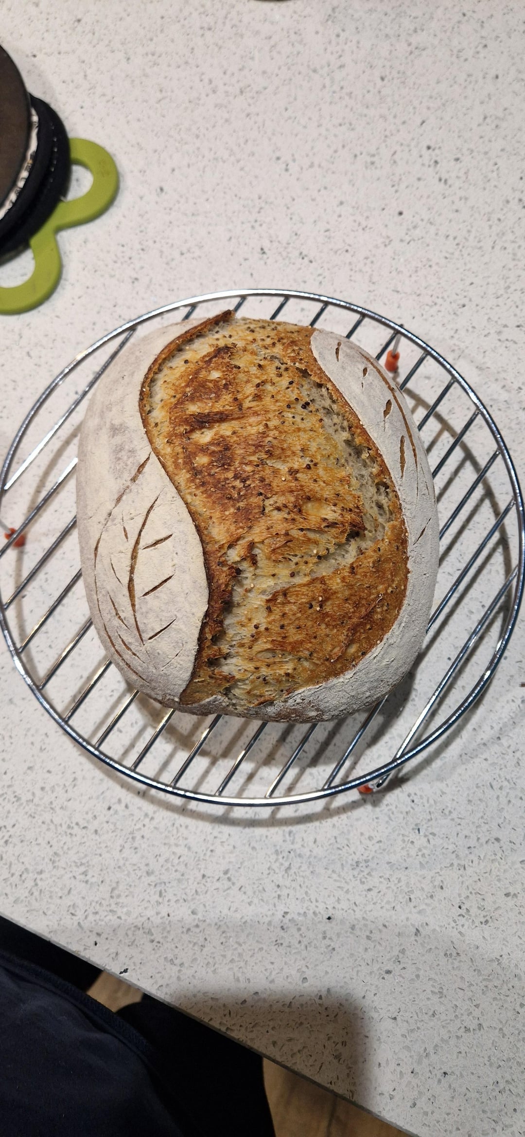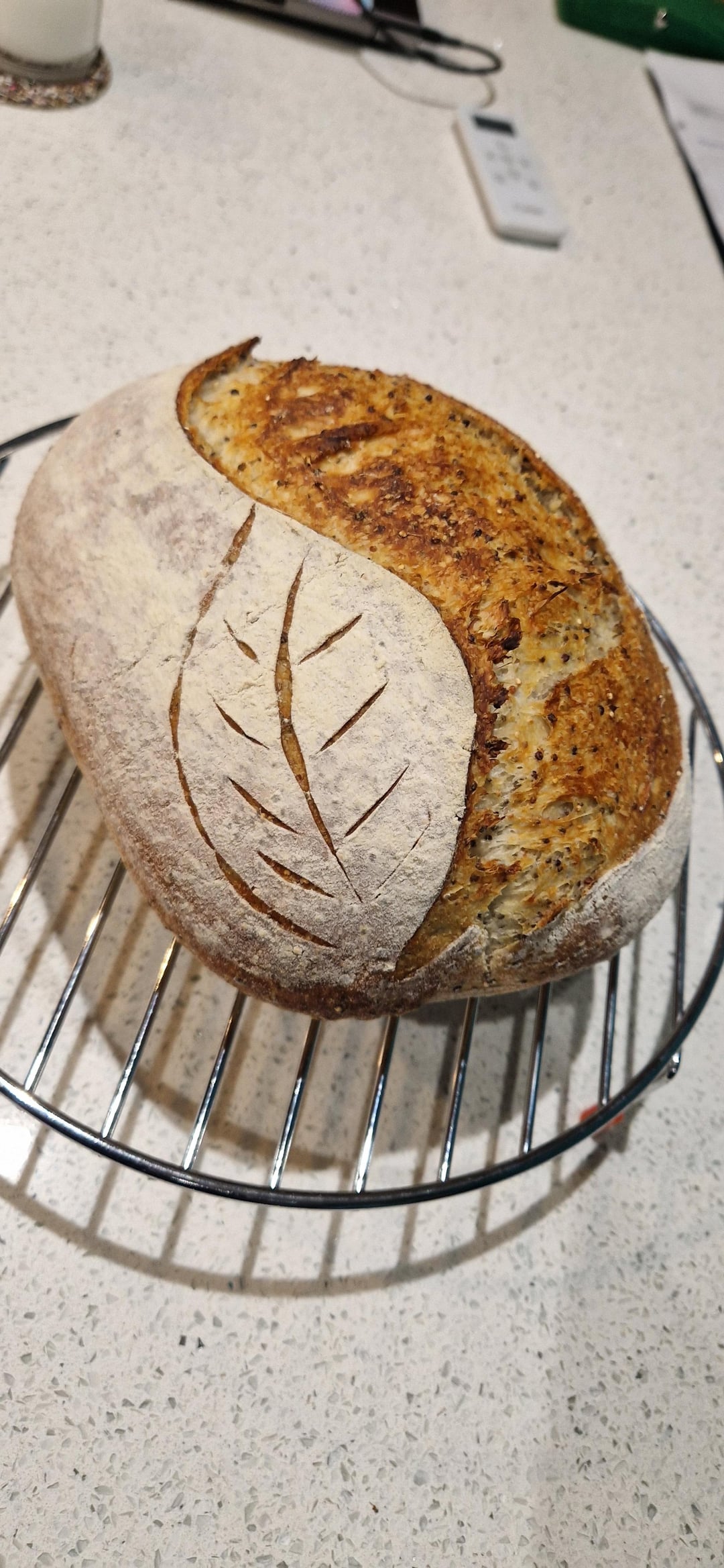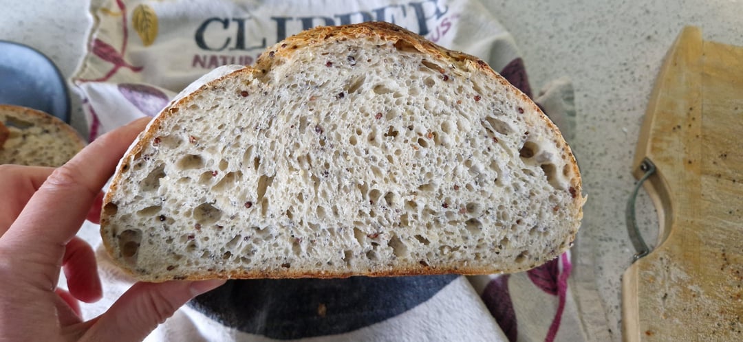 This is maybe my 8th loaf. Its the best one yet. Crust just as I like it (nice and crisp, not too thick), taste is delicious (not too sour), seeds are well incorporated, crumb is so light and airy and even, good chew. Amazing fresh or toasted. I think I will make the effort to autolyse everytime in future as that is the main change from the usual.