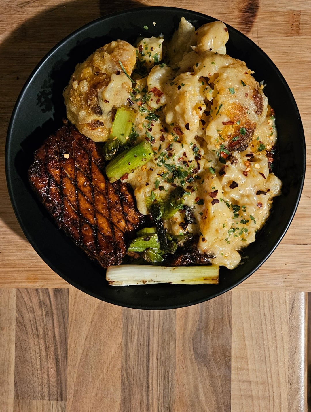 Goddamn I wish I was as confident burning things as you are – you got SUCH a nice looking crisp on thr tofu and some gorgeous brown bits on the cauliflower. I’m so afraid of accidentally burning things I can rarely quite get that level of crispiness you’ve developed here