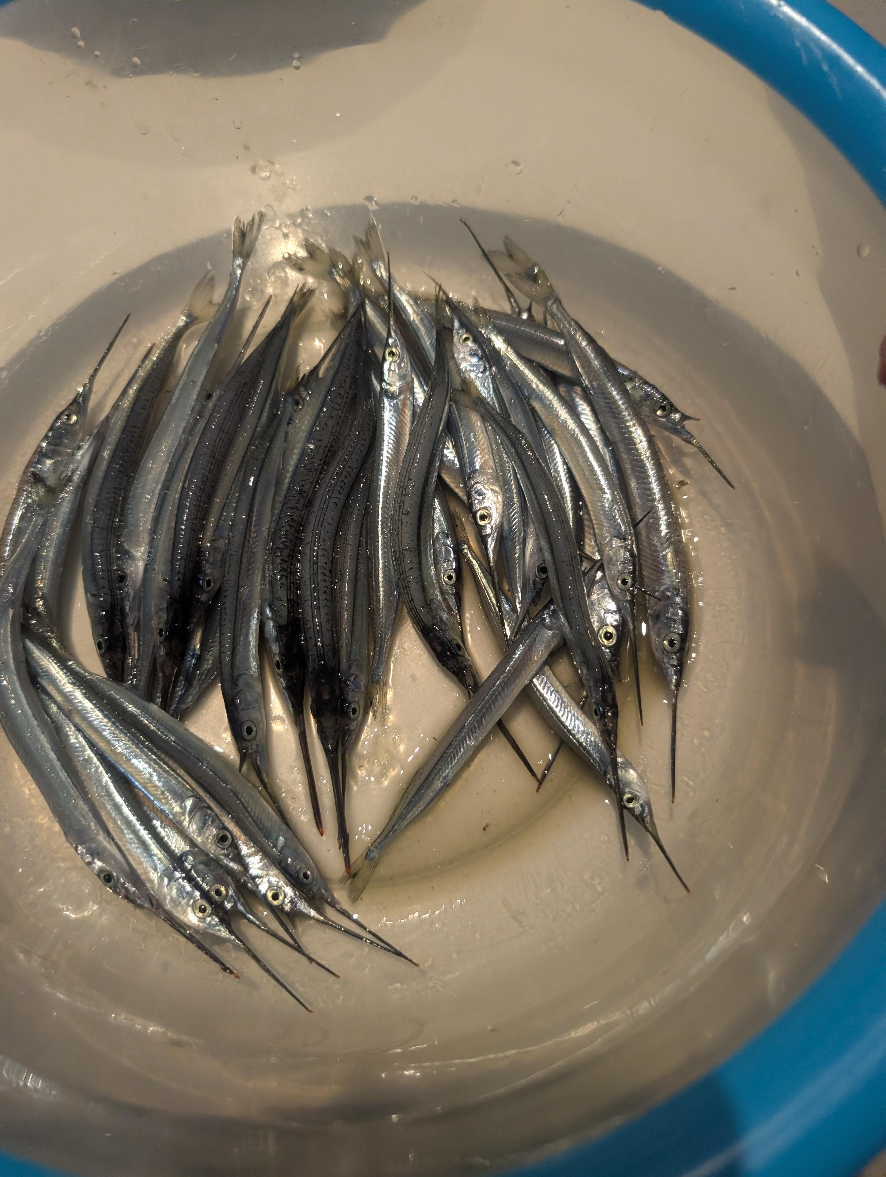 Those look like ballyhoo, which I’ve always used as bait, but Google claims they’re edible but they have lots of bones.