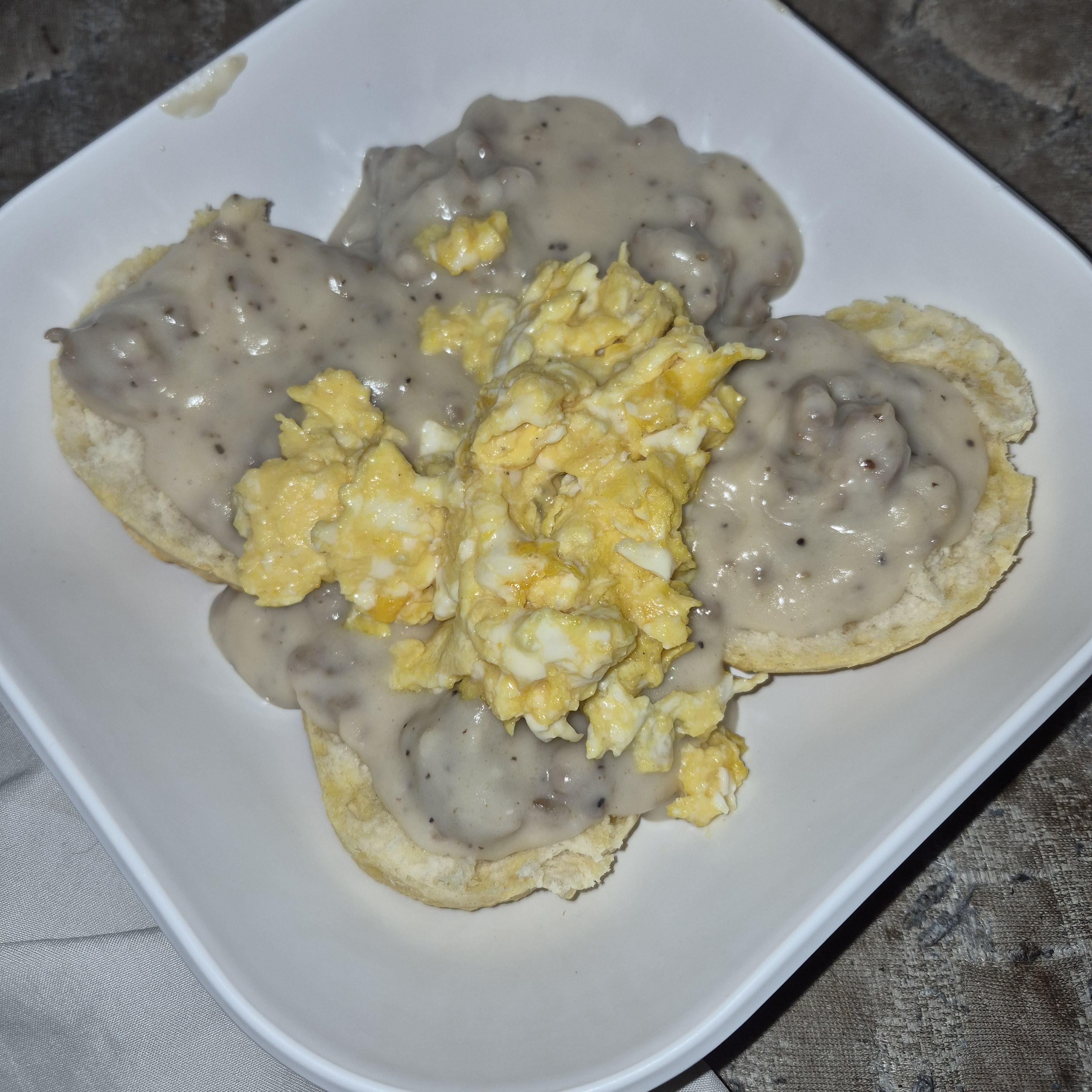 Eggs should be separate from the biscuits and gravy (personal preference), but otherwise, this looks bomb.