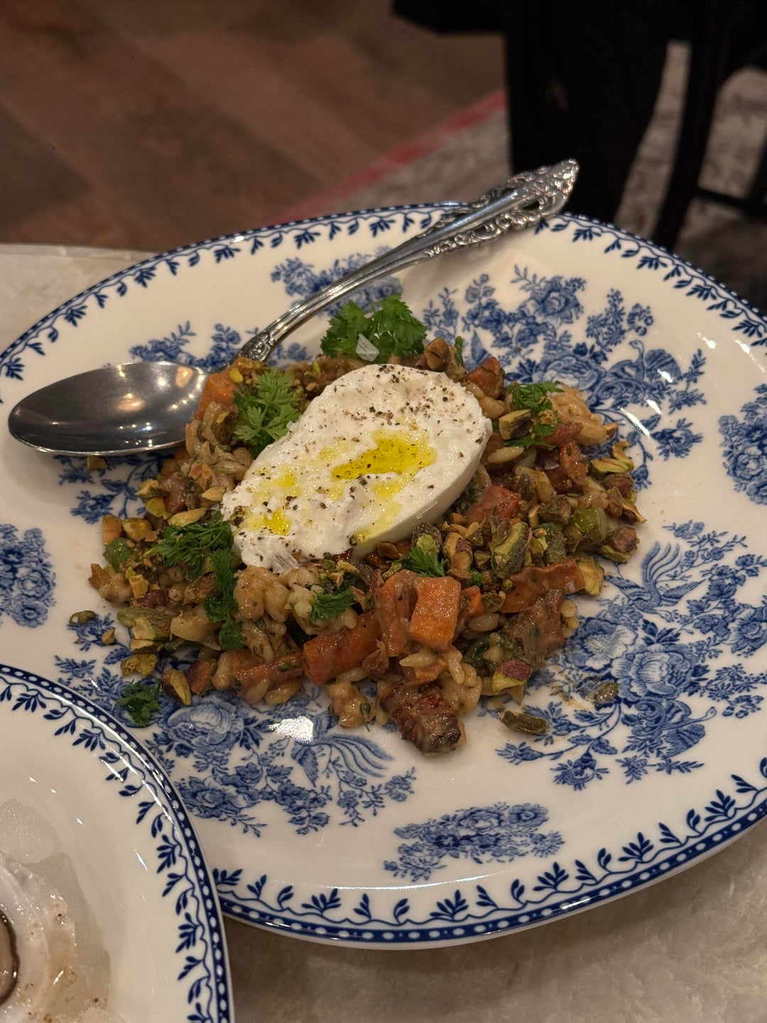 I went for dinner Friday and thought it balanced simplicity and depth. Oysters arrive briny and clean, layered with smoked shallot, grilled olives, and Calabrian chili for a subtle hit of heat. They were also super accommodating and allowed me to do a half order. The mozzarella crostino is rich and comforting, with squash mostarda and candied pepitas adding sweetness and crunch. The roasted carrot salad is hearty and well composed, combining broccolini, orzo, pistachio, and burrata, all tied together with a date vinaigrette that adds warmth without heaviness.