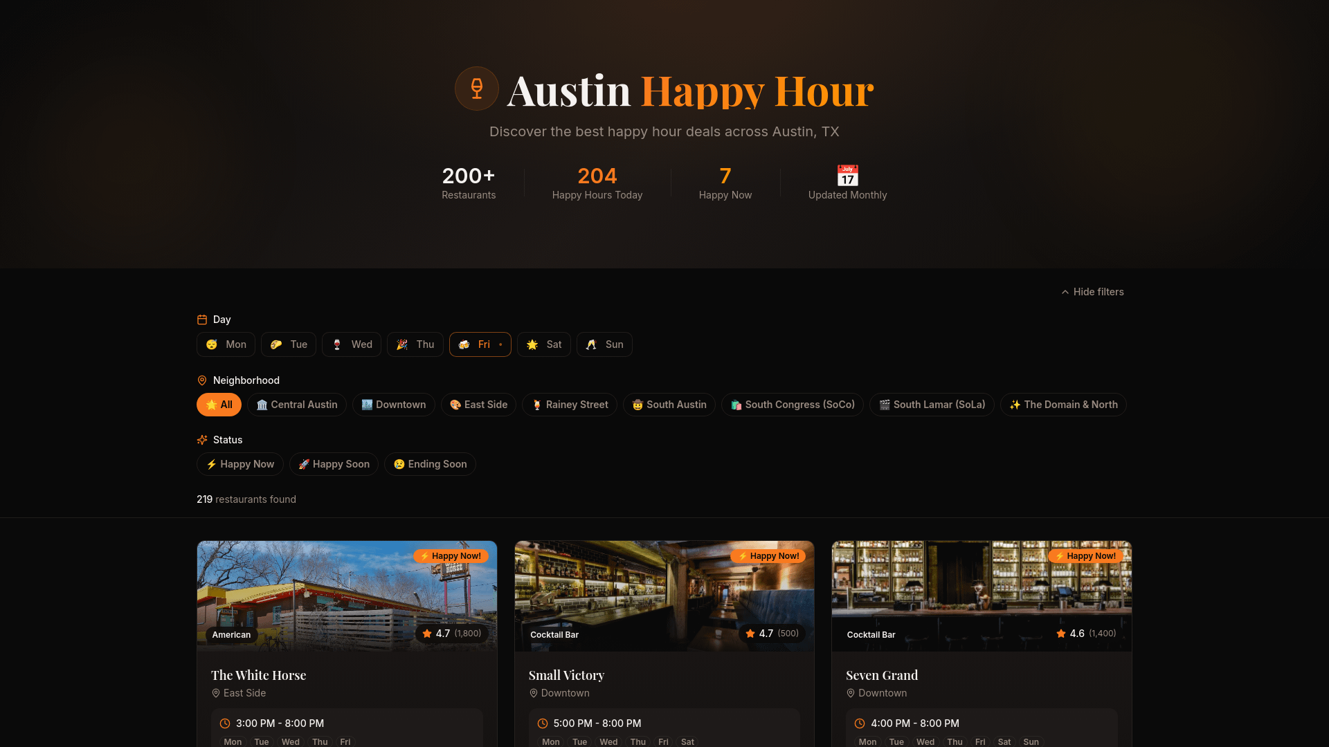 I built a newer happy hour site for the city — https://www.atxhappyhour.com/