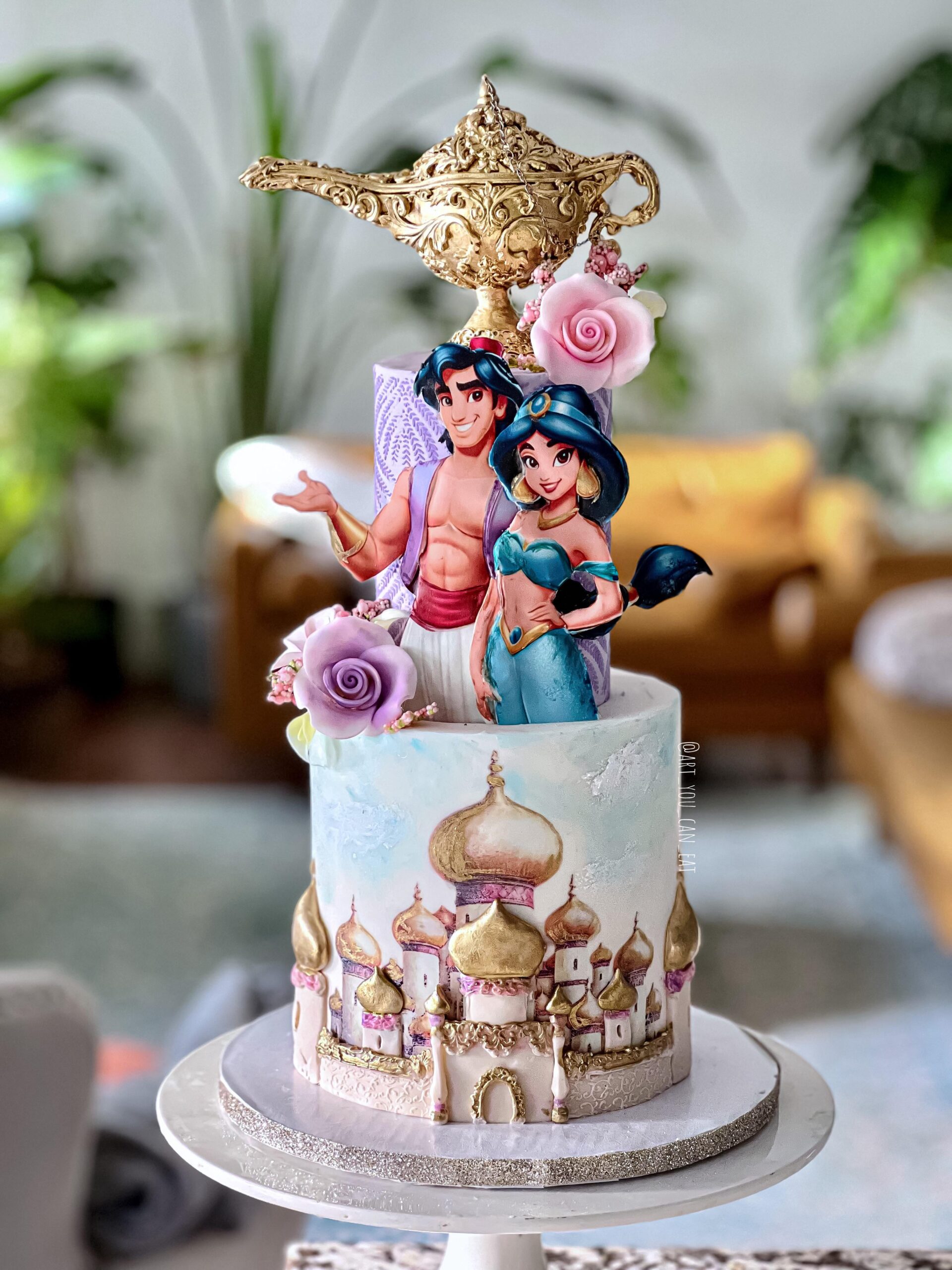 The magic lamp is so well detailed! and the light colors of the frosting on the cake just make the objects stand out….looks great 👍🏻 (and im sure it must be delicious as well)