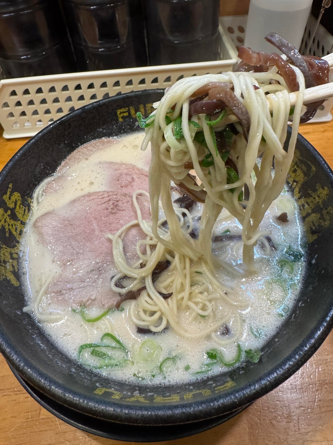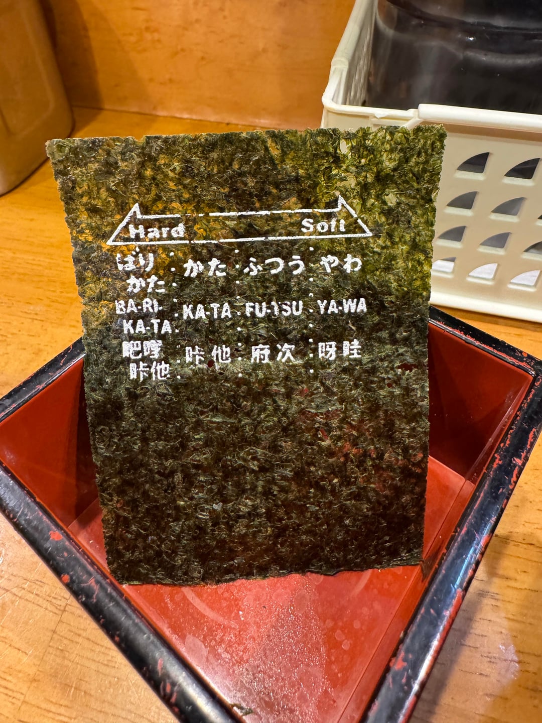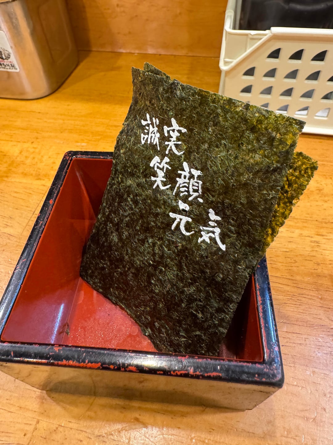 This chain shop is well-known for providing up to two free noodle refills (kaedama) per bowl ordered. I definitely got my money’s worth. The Chashu was just OK (you could tell the texture of the meat showed it may have been previously frozen), but the soup, egg, and noodle quality were yummy. I like how they print messages on the nori sheets. Not the richest tonkotsu I’ve had, but totally decent after hitting a few drinks. 4/5 stars. Added +1 star because of the 2 free noodle refills.