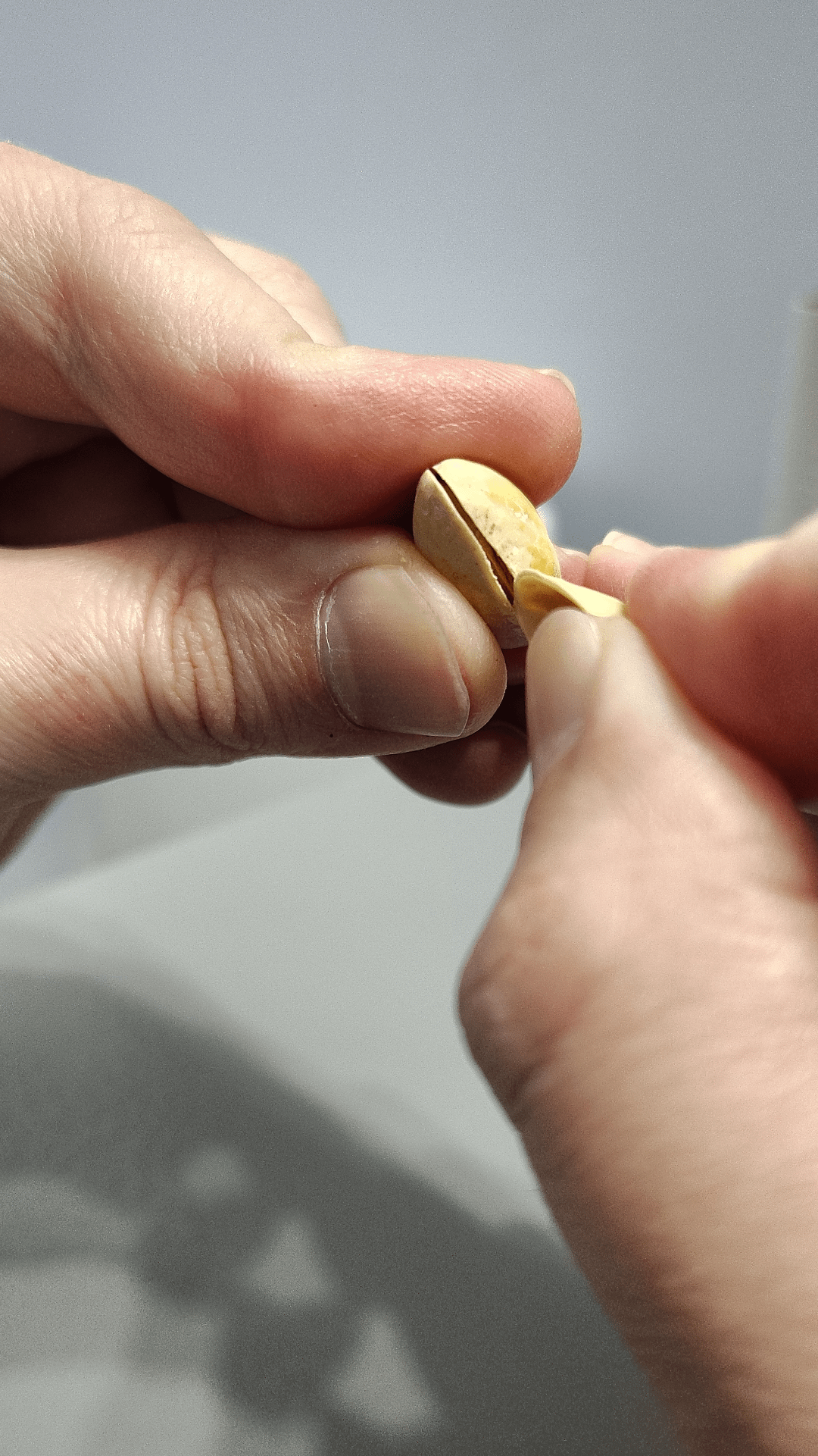 As long as there's an opening, stick an already cracked pistachio half in the crack and twist. No need to toss the uncrackable nut. by MarkEgatts 11 Comments Fuzzy_Welcome8348 1 month ago THIS IS GENIUS!!! Bonus points bc it can even work as a road trip snack hack heidismiles 1 month ago Yes but nutcrackers are a thing. Vanne676 1 month ago I use a butter knife. Verix19 1 month ago Both thumb nails back to back and pry that mother open kiryu_chaaaan 1 month ago And this whole time I was using the pointy end of a nail file that’s now bent. P-Holy 1 month ago in order to open the pp you put ur nail in the slit and pull them appart. Key_Science8549 1 month ago Knife point janegayz 1 month ago this is better than me putting it between my teeth on its side and biting down until it cracks potatisblask 1 month ago Teefies works for me. unclebea 1 month ago I thought if they didn’t open they were dead MCD4KBG 1 month ago I use my teeth