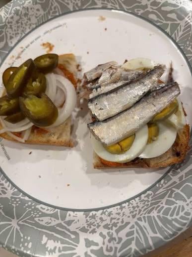 Love, love, love sardine sandwiches with sweet onions. Throw on some slice avocado!