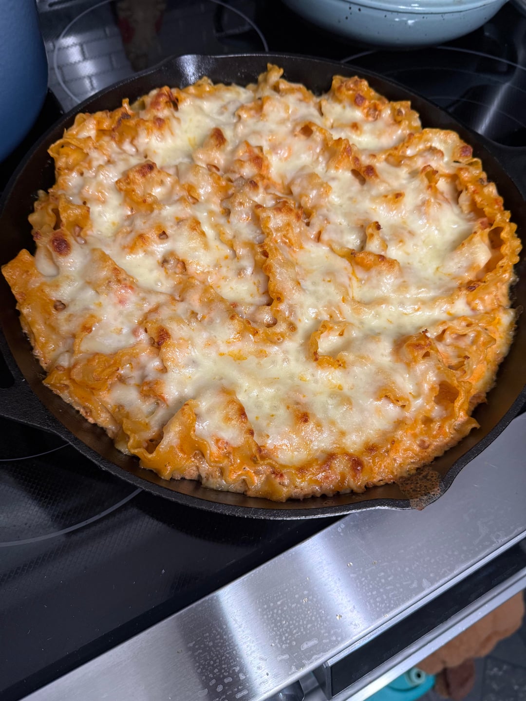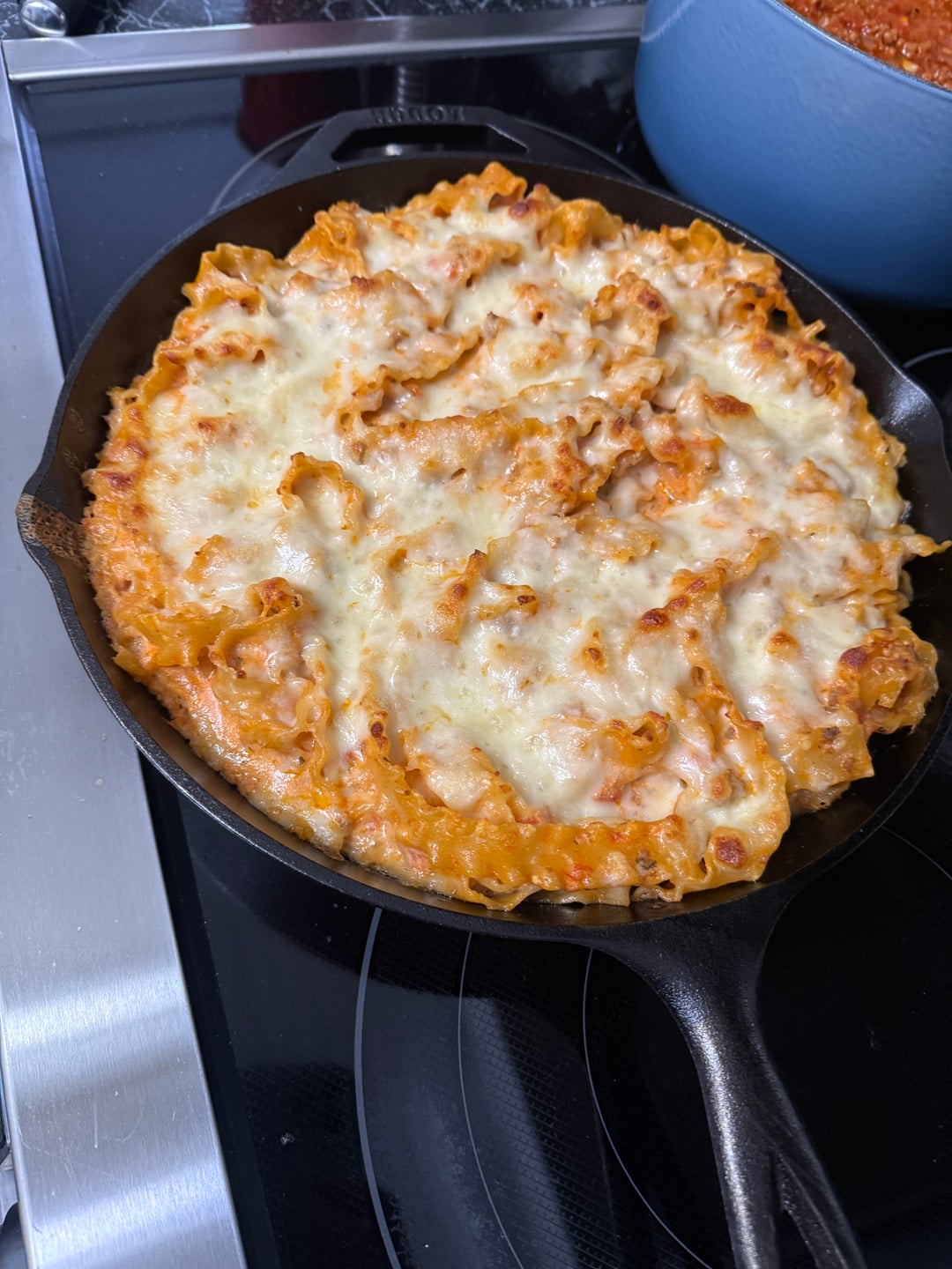 Took about an hour, less mess and easier than standard lasagna, all without sacrificing flavor. Followed the recipe pretty much exactly, except I used 1 lb of shredded mozzarella instead of measuring out 3 cups and I didn’t broil the top.