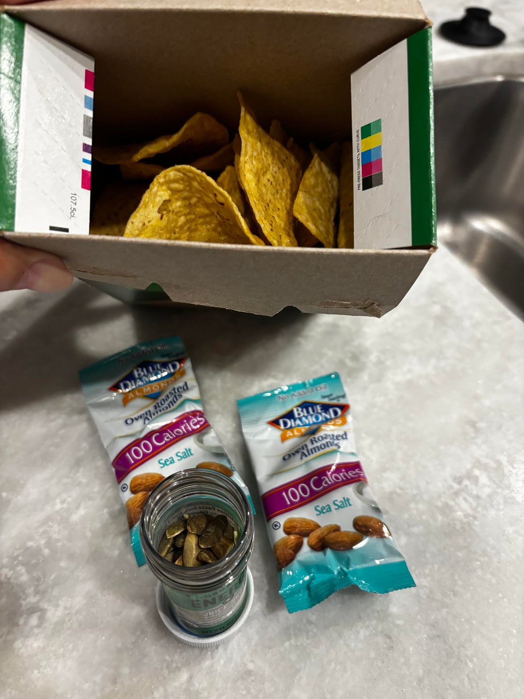 Tosses my tortilla chips in a box so I don’t turn them into bread crumbs before snack time!