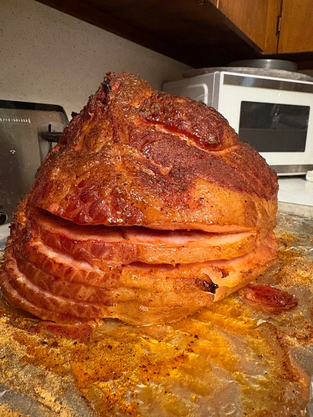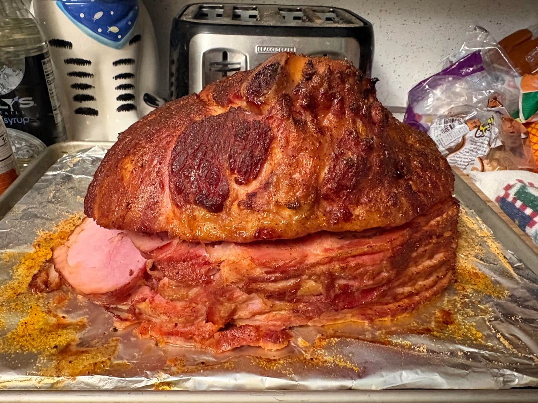 Sorry for it not looking so aesthetically nice, but it came out looking/tasting great! 250 for 3 hours on a Pro Series 22. Lots of butter and Honey Hog Seasoning from Meat Church!