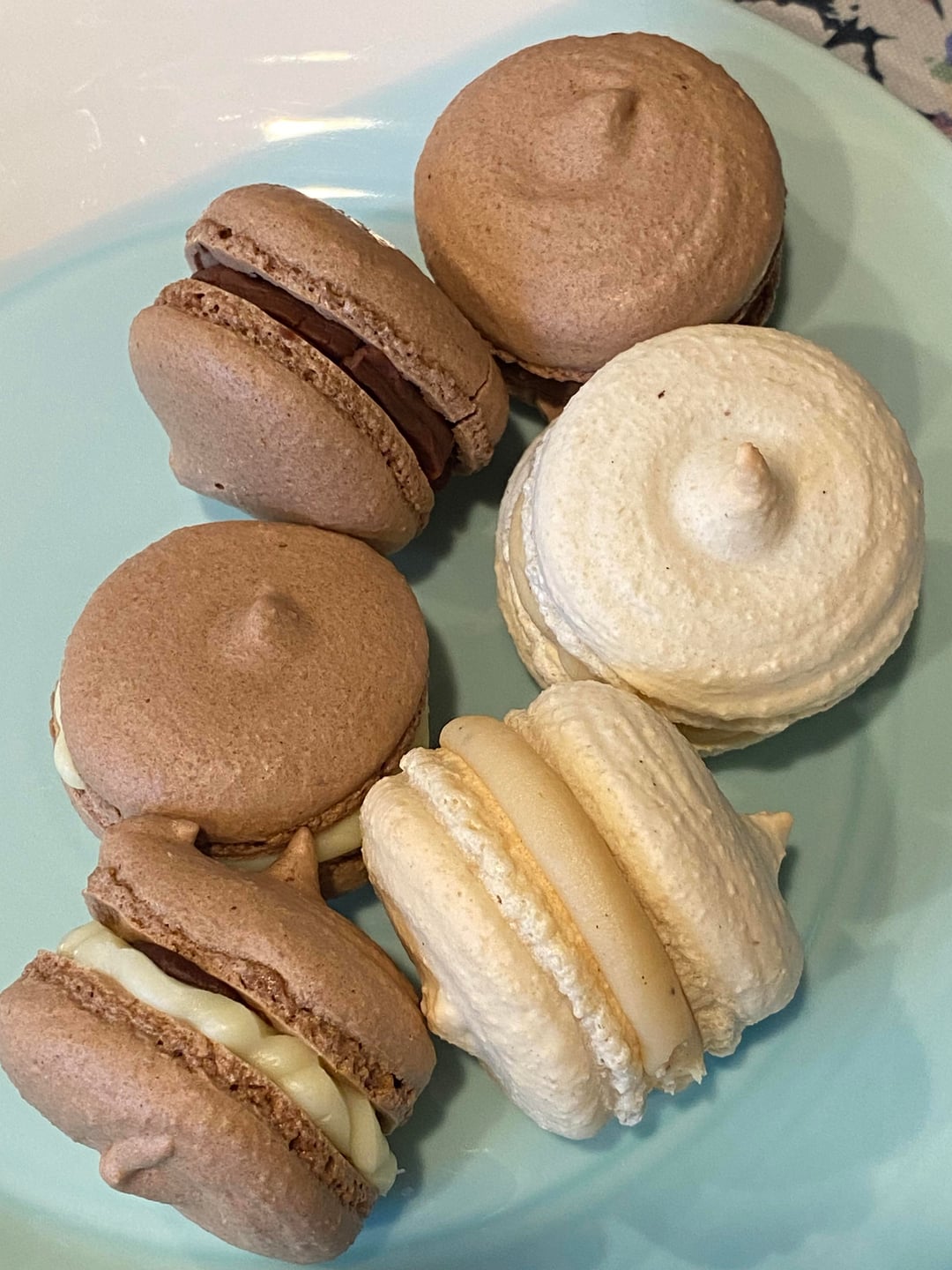 I’ve been thinking about savory appetizer macarons for ages now (well, ages considering I only learned how to make them in September) and I have an opportunity to focus group some tomorrow. I'm making a dessert for a luncheon, and I set aside a few shells to fill with Boursin-style cream cheese and bacon, and a satay-spiced chicken salad. The satay filling is pretty good; I added a little extra lime and ginger bc I love that combination, and I had a sandwich of it for supper tonight. I used my regular recipe but just left out the vanilla.