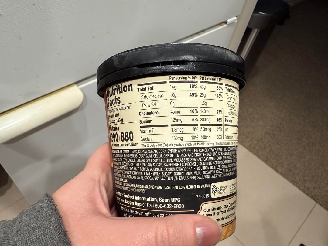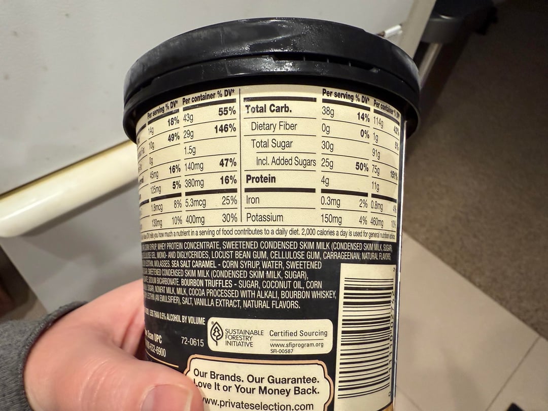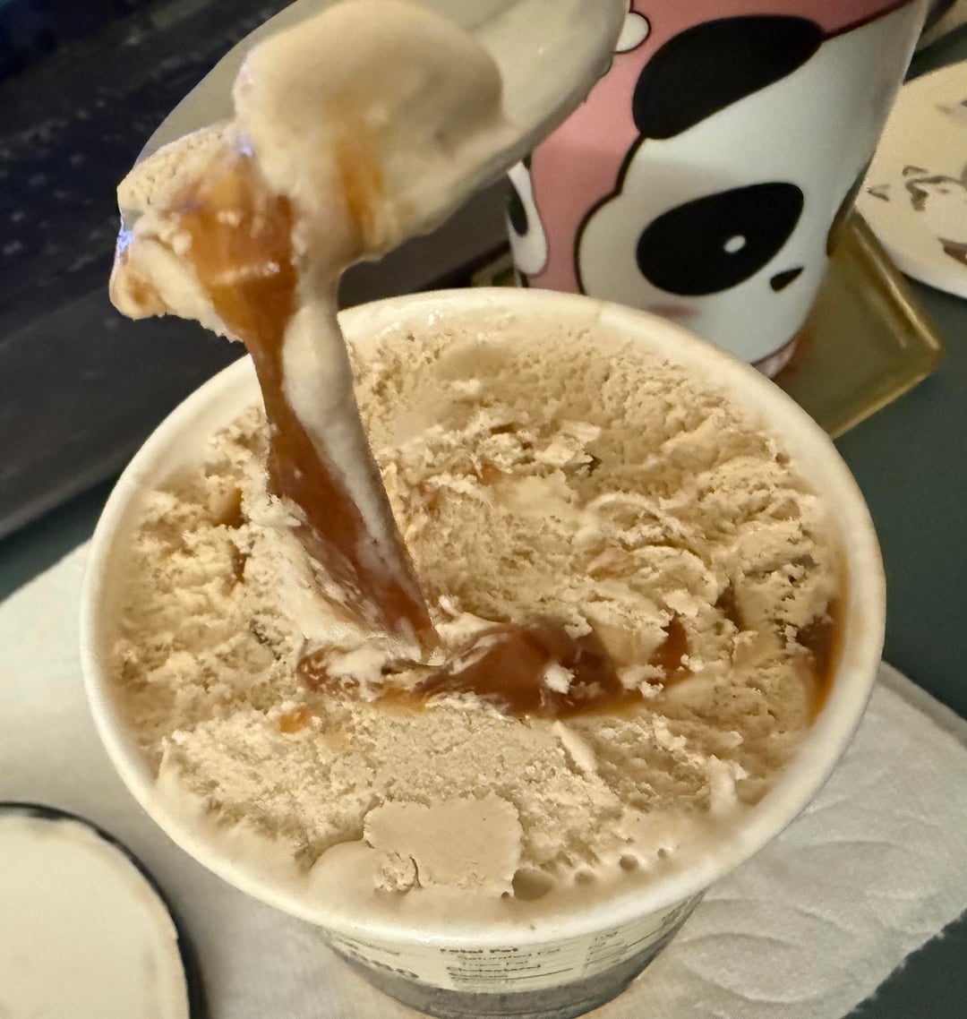 I picked this up at my local Kroger affiliate a couple weeks ago. To start, I couldn’t really taste any “brown butter” in the base. It tasted very bland, which can work when paired with strongly flavored mix-ins. The base was also very airy and light, which is to be expected from Private Selection. It’s a budget option, after all. The caramel is where I assume the bourbon flavoring was supposed to come in, and while it does taste nice… the texture was weirdly slimy. I hate to say this, but it reminded me of snot….. absolutely no complaints about the truffles at least. Next time I’d skip over this and go for the sea salt caramel truffle which uses the same truffles but as far as I can remember NOT the same caramel. At least I don’t remember the caramel being slimy in that one, but I could be wrong 😄