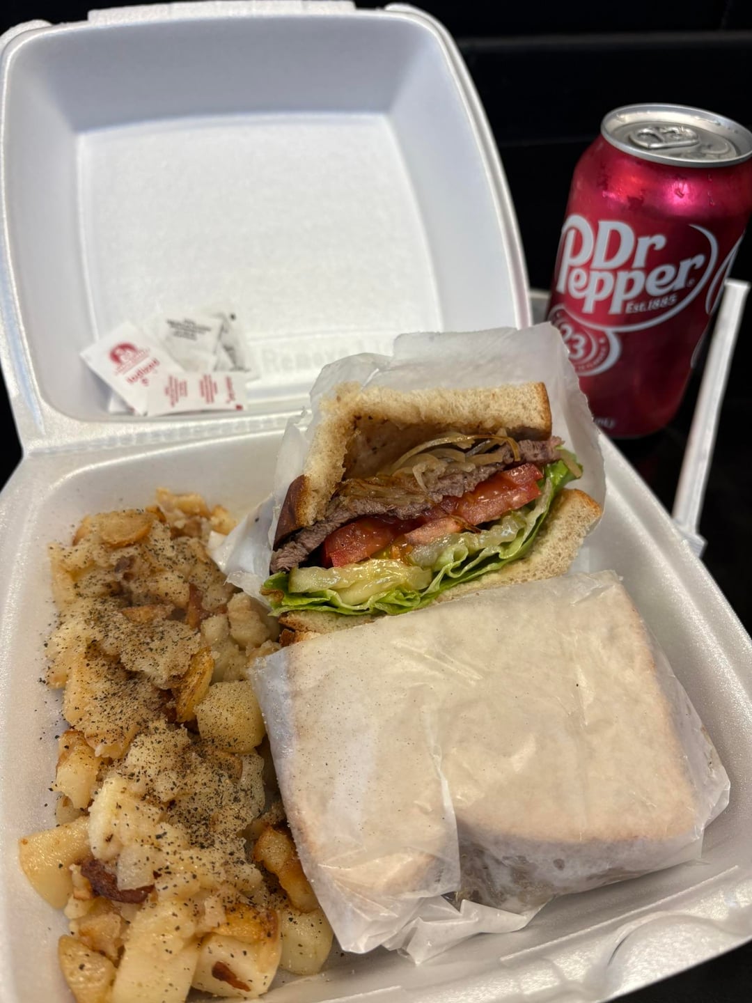 Moon's was amazing. We sat at the counter for lunch but all the breakfast food smelled so amazing I had to add some fried potatoes onto my steak sandwich. So delicious and such a great spot.