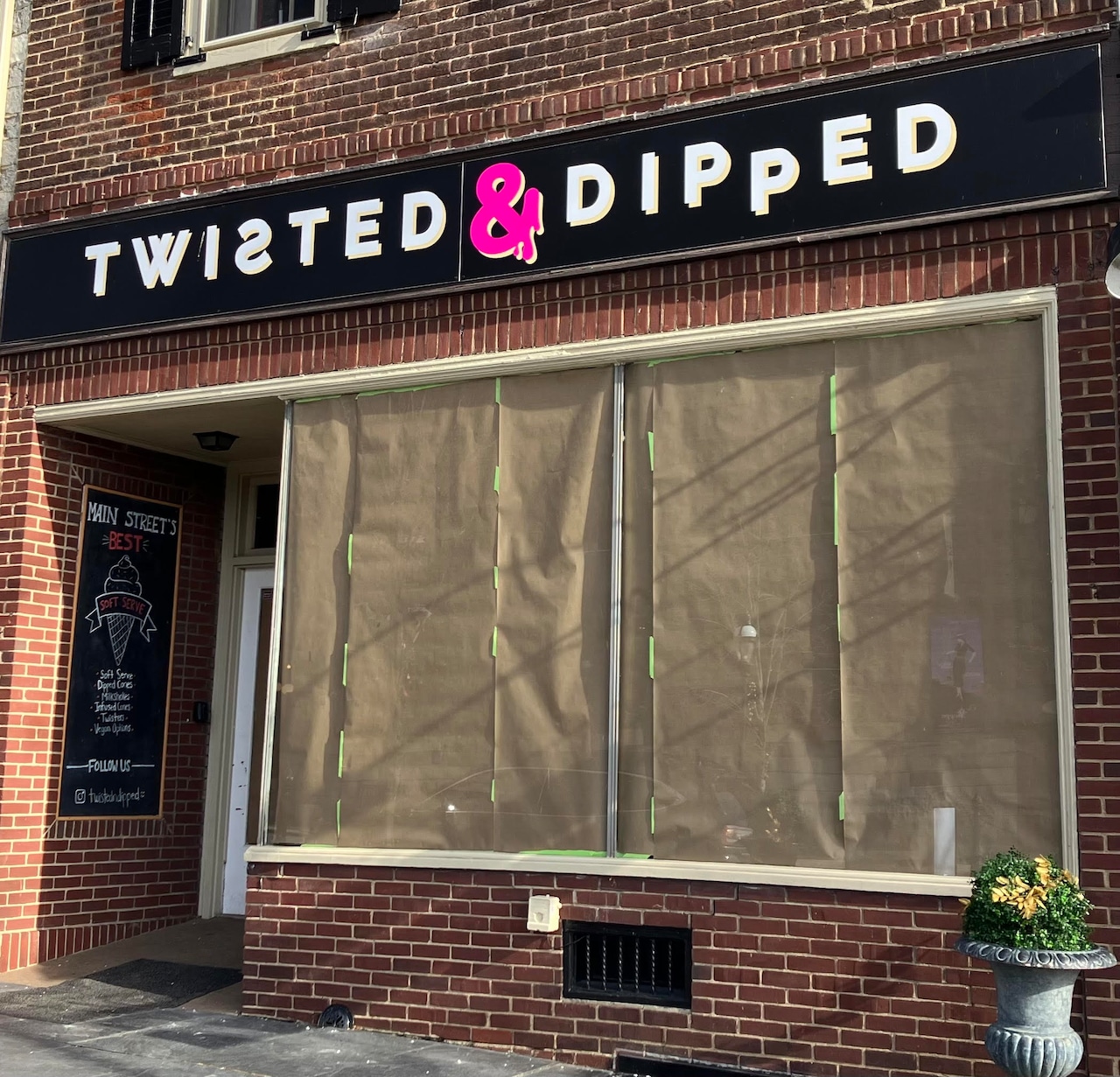 Twisted & Dipped, 446 Main St., was shuttered this week with window coverings. The shop opened in space that previously occupied The Chocolate Lab in July 2024.
