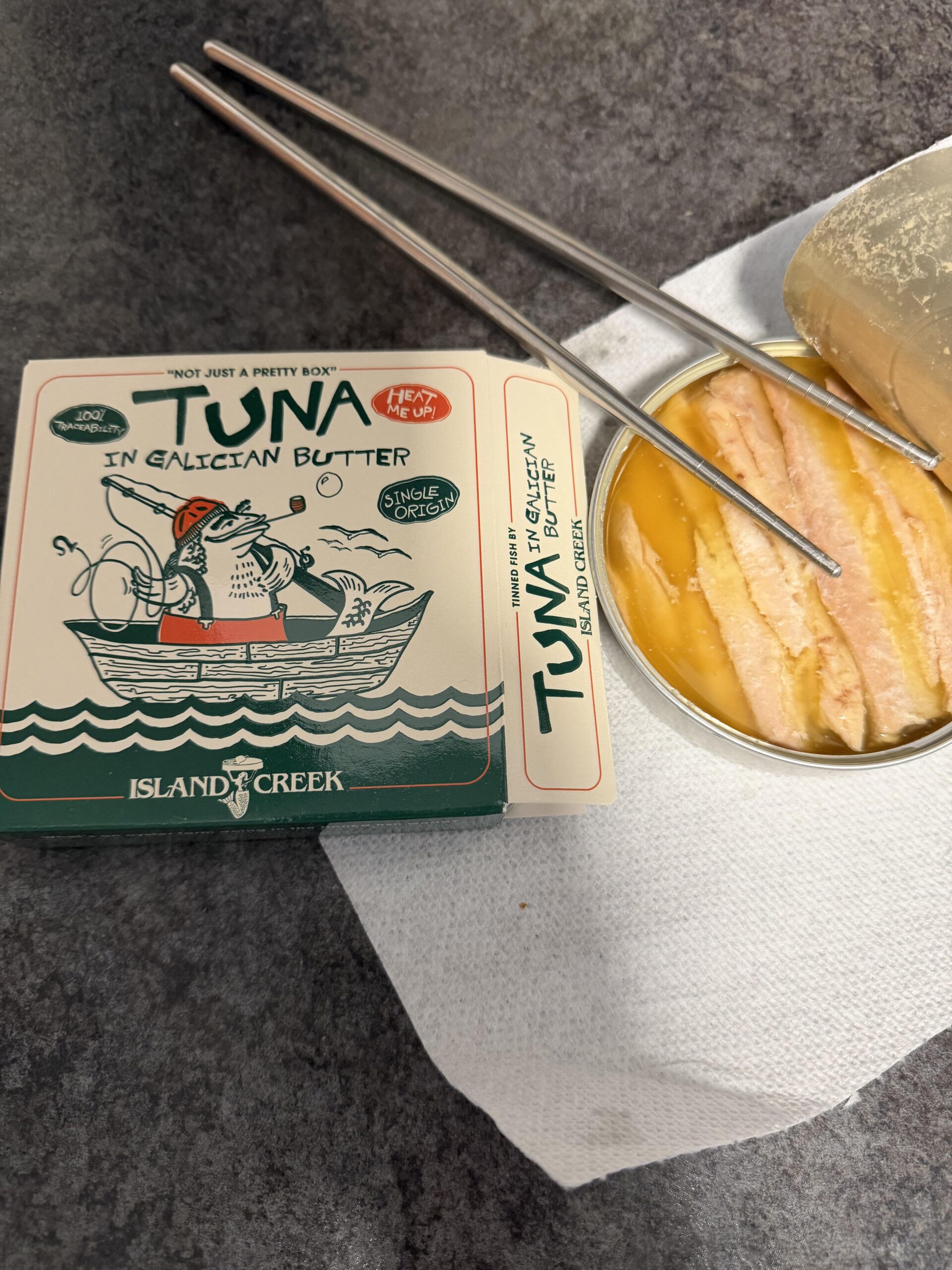 But the tuna in butter is really special. There’s so few butter tins at all and the actual tuna they use is really nice as well. There’s a lot of nice tuna options around that price point (and a couple that aren’t nice!) in high quality olive oil and all that (Ortiz leaps to mind) but the butter really gives it an indulgent feeling.