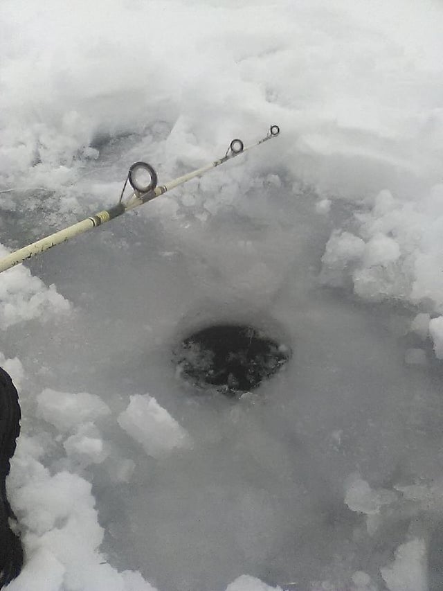 Was out fishing half the day, didn't pull any fish up my ice hole, could see canada on the far side of the river through the fog.