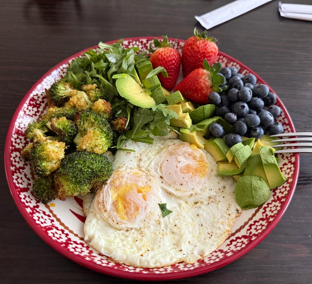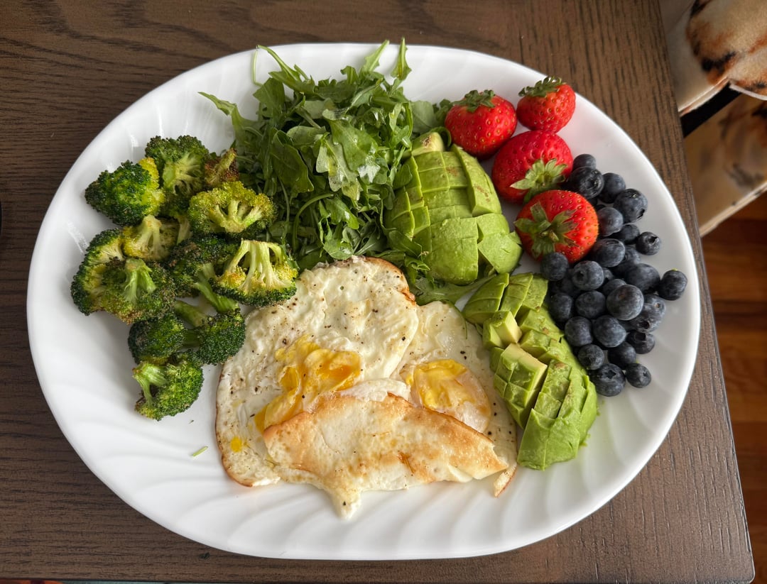 I feel great after eating this simple breakfast, but Im looking for some things to add, I pour olive oil over the arugula, and broccoli. Sometimes I’ll add a small piece of steak, or salmon. Thinking about adding some hummus to dip my broccoli in.