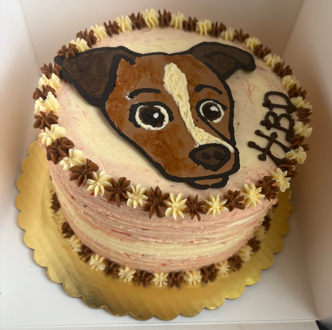 I wanted to try out the buttercream transfer method to surprise a friend for her birthday.It’s a Riesling cake covered in vanilla and rhubarb buttercreams, with strawberry-rhubarb compote and almond-oat crisp between layers.by SockSevere6396 7 Comments SmokyGreenflield-135 3 months ago OMG, love this! Beautiful work! Which_Republic4558 3 months ago I hope she liked the cake! BumbleBreezeSun 3 months ago This is so gorgeous! I would cry tears of gratitude and you are really awesome and a great friend. Did your friend enjoy?! Knarfz6464 3 months ago WOW! This cake looks amazing! I’m sure your friend will love it! 🥰🍰🐾👍🏼 OneFoundation4495 3 months ago Awww! Lovely! TheNibbleNook 3 months ago This is so sweet! You really captured his expression 🥹 RaccoonZombie 3 months ago You’re such a thoughtful friend