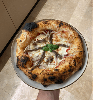 Mutti Sauce, White Onions, Shallots, Basil, Fior di Latte Mozzarella and Pecorino baked in an OONI KODA 16.