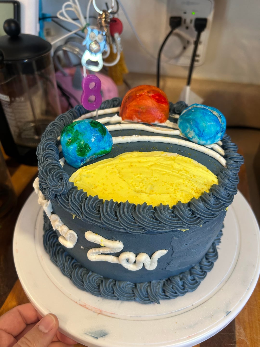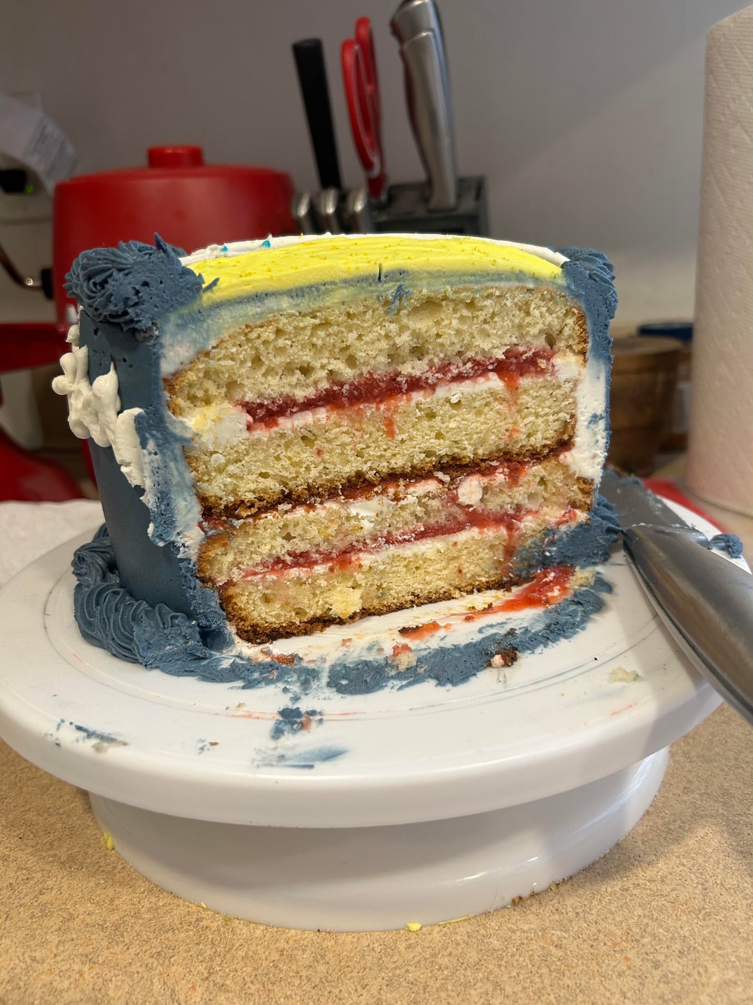 My son originally requested a Pokemon theme but a week before his party changed to space themed. This year I am focusing on flavor more than decoration but still had some fun. Lemon cake with homemade strawberry filling and vanilla buttercream.
