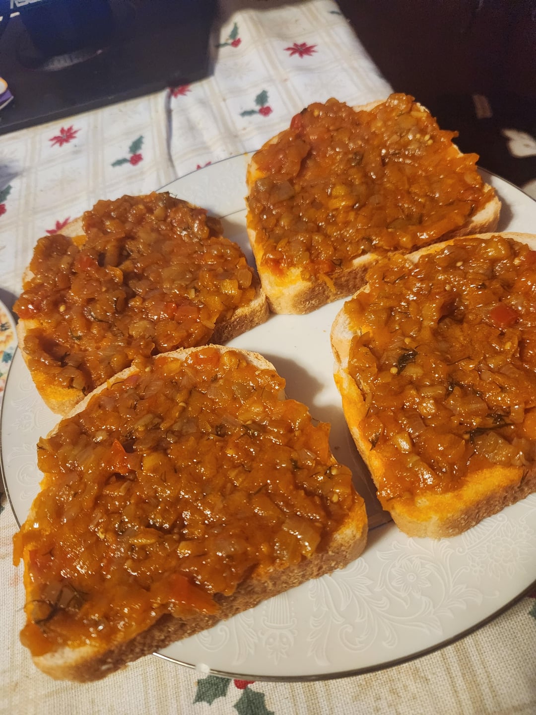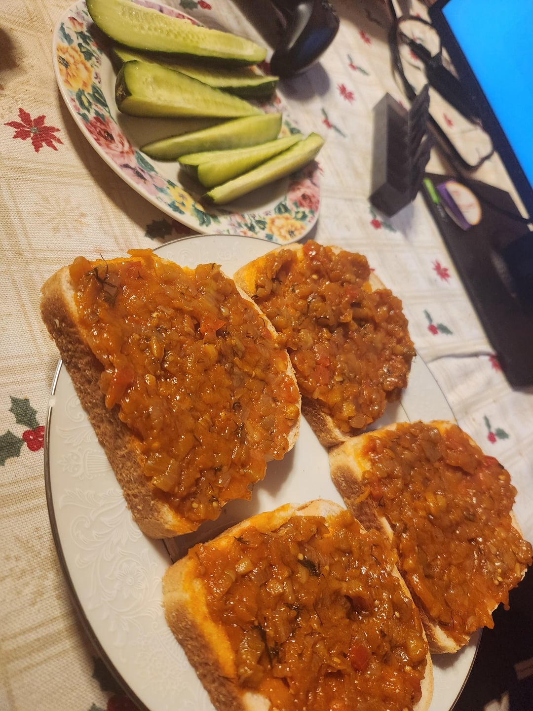 240~ calories vegetable spread with 40 calories bread (recipe in comments)by Nun-Information Dining and Cooking