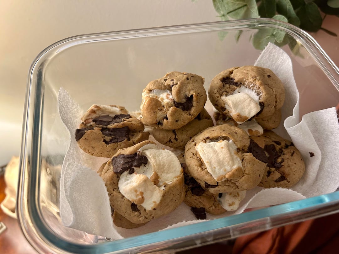 • s’mores cookies with the vegan marshmallows one of my besties bought me. I’m really bad at baking so the fact that these are delicious is shocking to me. I even cut up the chocolate! 😂