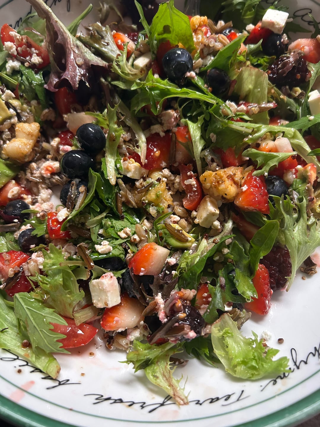 This is a salad that I have been making for several years, and I will keep making it until the day I die… or I cannot find lettuce and berries 😊. It is usually my go-to summer salad, but, in the dead of winter, I found some nice strawberries and blueberries, so I made it for dinner tonight.