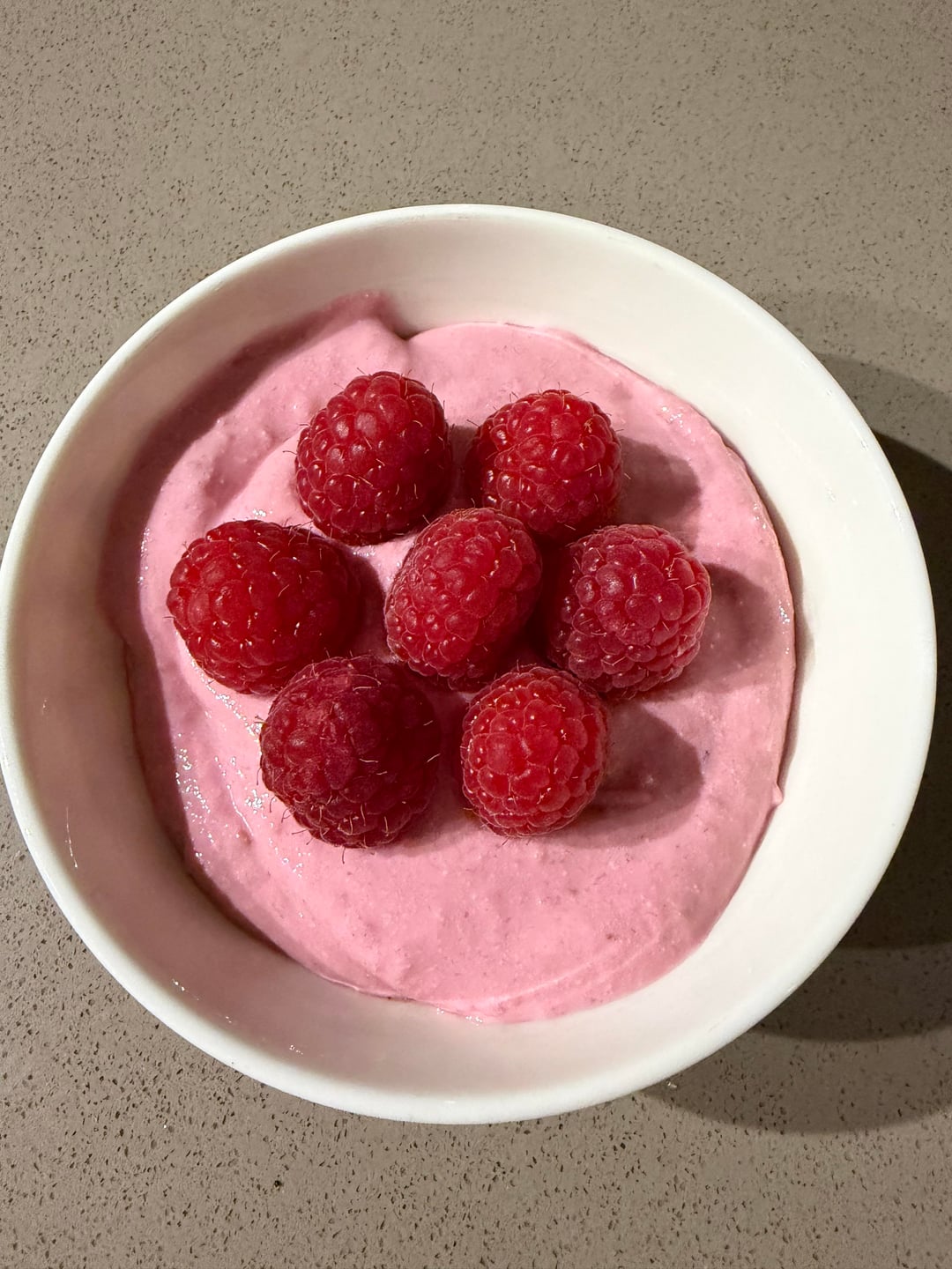 Dinner: wasn’t hungry til 8pm! Made a raspberry cottage cheese mousse as a snack