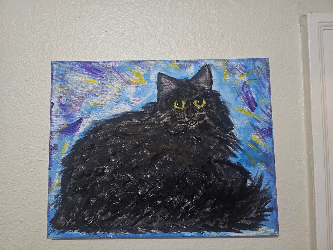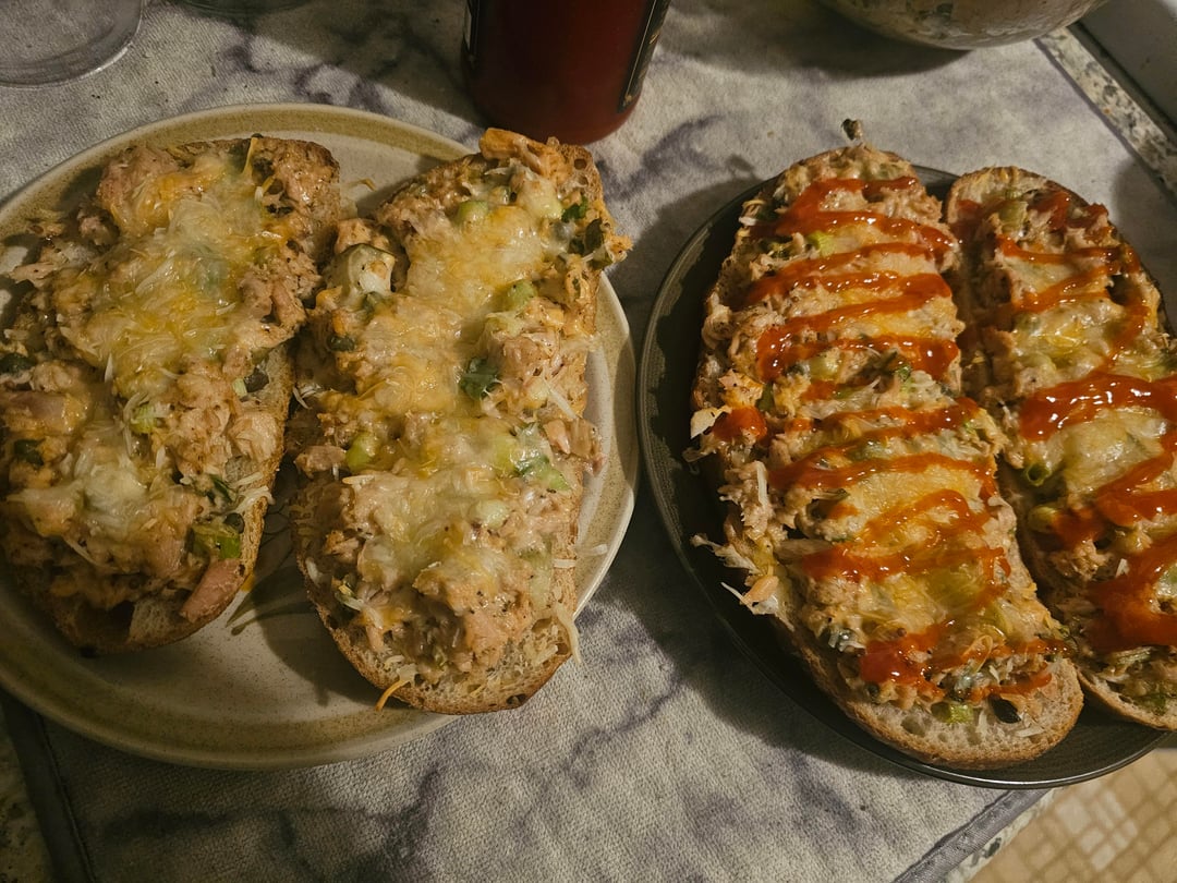 Canned yellowfin tuna melts with capers, grillo pickles, green onions on sourdough. Don't know where Azrael went so here's the painting of him i made in October. He got a lil tuna