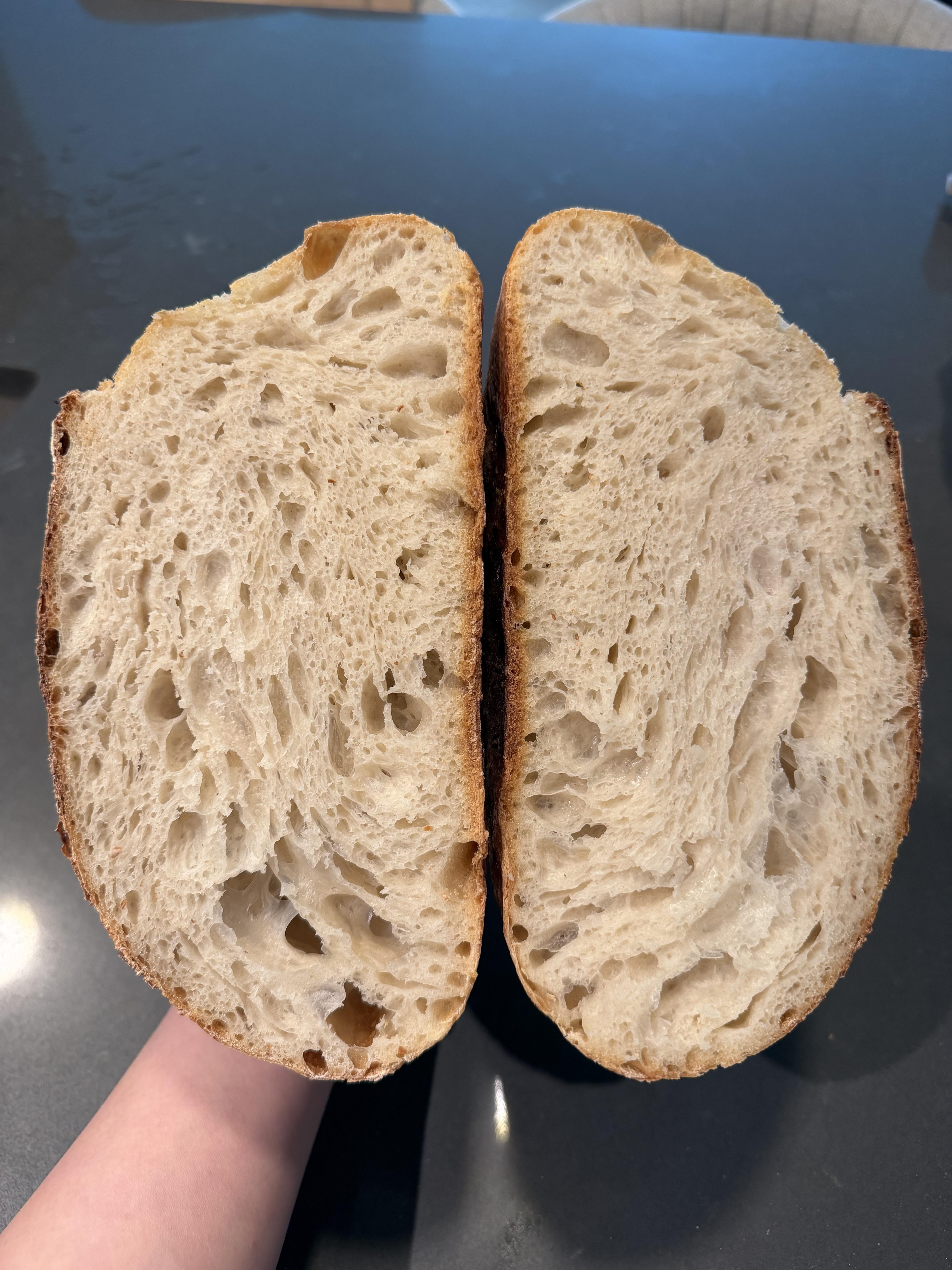 Psa to all noob bakers: This is an example of a great bread for a noob, don’t go down the rabbits asshole about under proof, over proof too much water, too little water, not enough yeast, over yeet. If the bread looks good and taste good, keep doing it till you perfect it the. You can start stressing over the other stuff. This is great bread, don’t worry about it, take care brush ya hair.