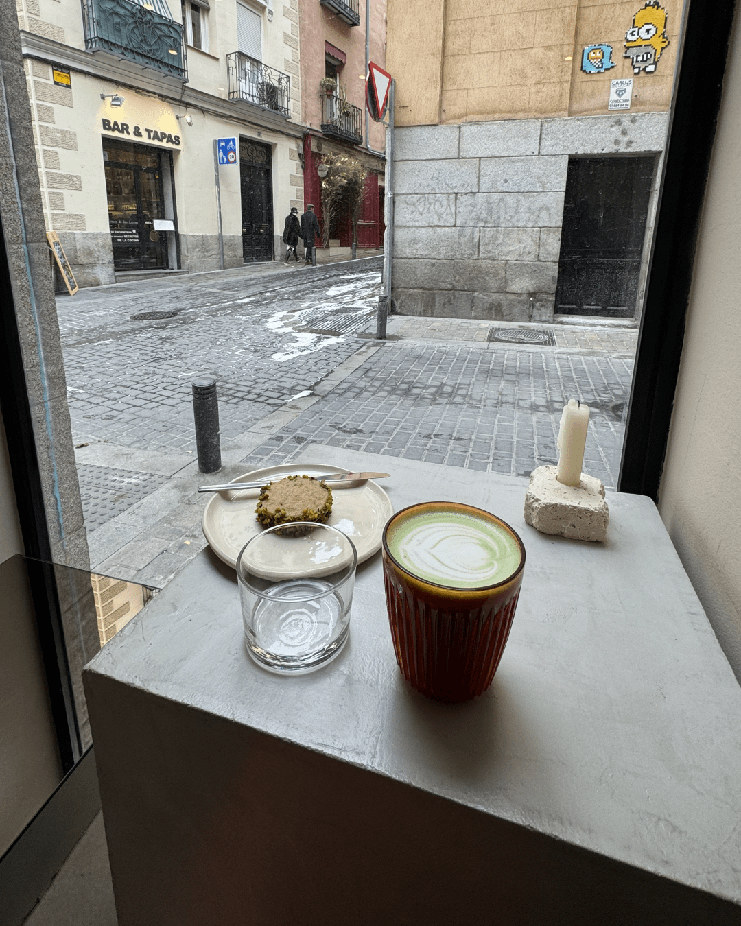 Re Café: This was a nice find on a street corner of the Barrio de Las Letras. It seemed to be quite new and the spread of baked goods was a definite draw. I’d had quite a few espressos by this stage so went for the Matcha which was delicious with the homemade Alfajor (biscuit with pistachio and dulce de leche). Very unique and bright interior which was a nice place to stop while exploring.