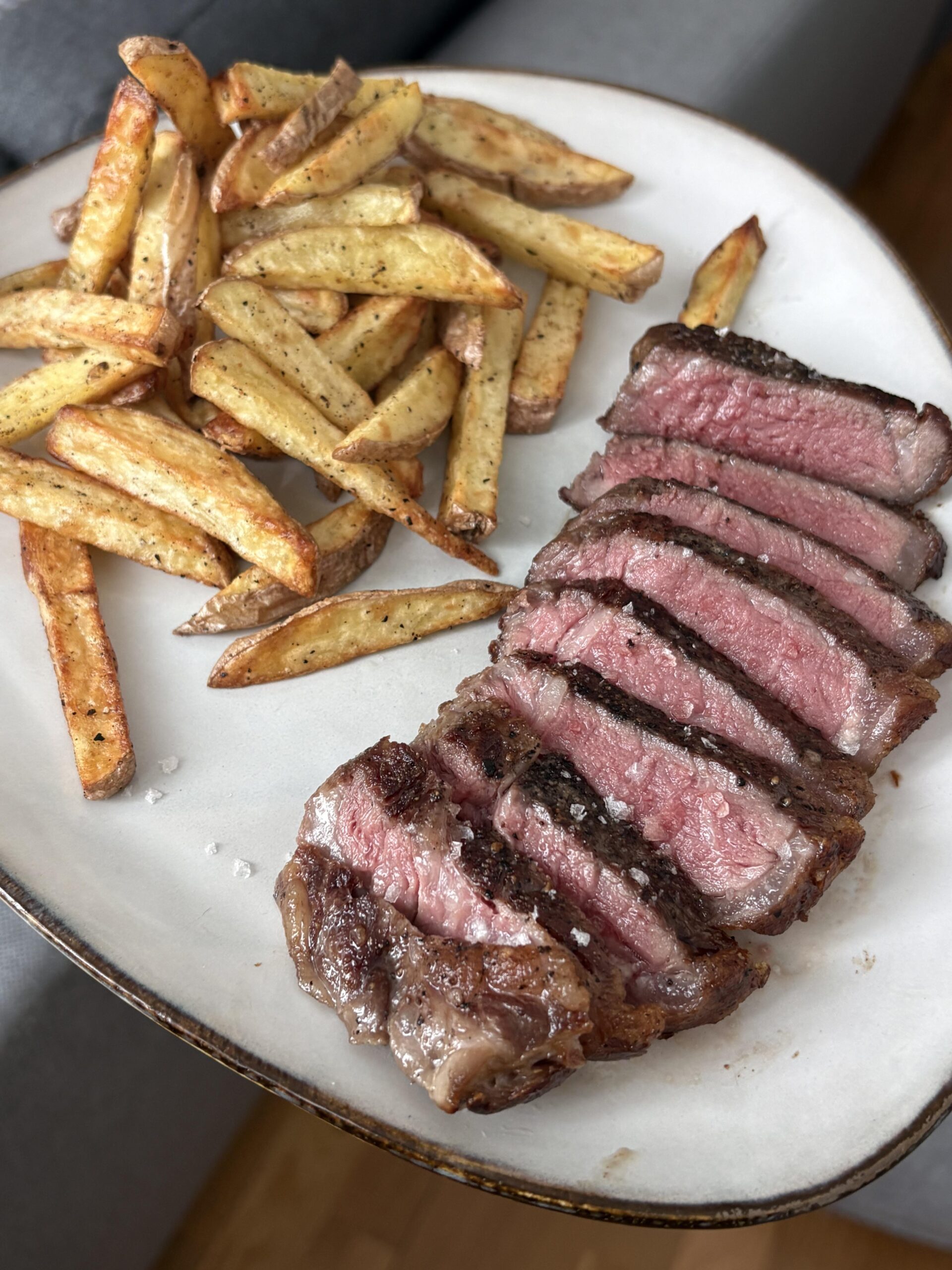 Hi everyone, newbie hereMade this New York strip today at 56C for 3 hours, 10 minute ice water bath and seared in stainless steel 🙂 homemade fries were delicious too by halasin97 Dining and Cooking