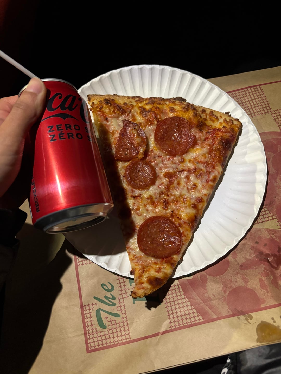 DiscombobulatedBus81 3 weeks ago hey vixxen !funny i just estimated anther similar pizza slice for someone lolcoke cans are ≈5″ in height, so this slice is prolly ≈7″ or so which would put the diameter of the whole pie at ≈14″just makes it a bit easier to estimate w numerical values like this in mind…w this style crust & pepperoni, id expect ≈300 calories per 1/8th slice which i believe is what you got here.so personally id log ≈***300 calories*** for this and not worry anymore ab it !!