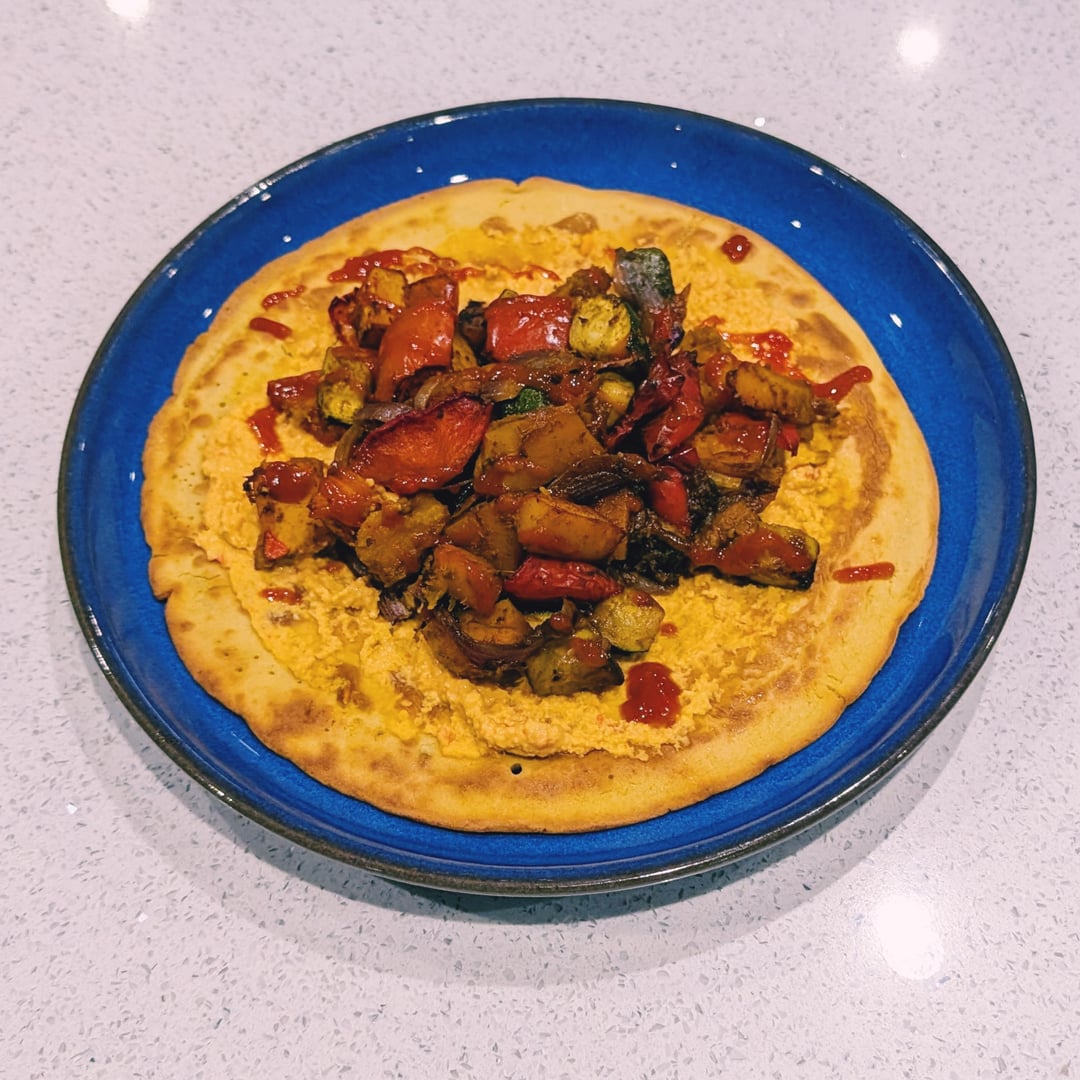 You can top the Socca it with whatever you like, but I've tried with and without Houmous and it's nicer with.