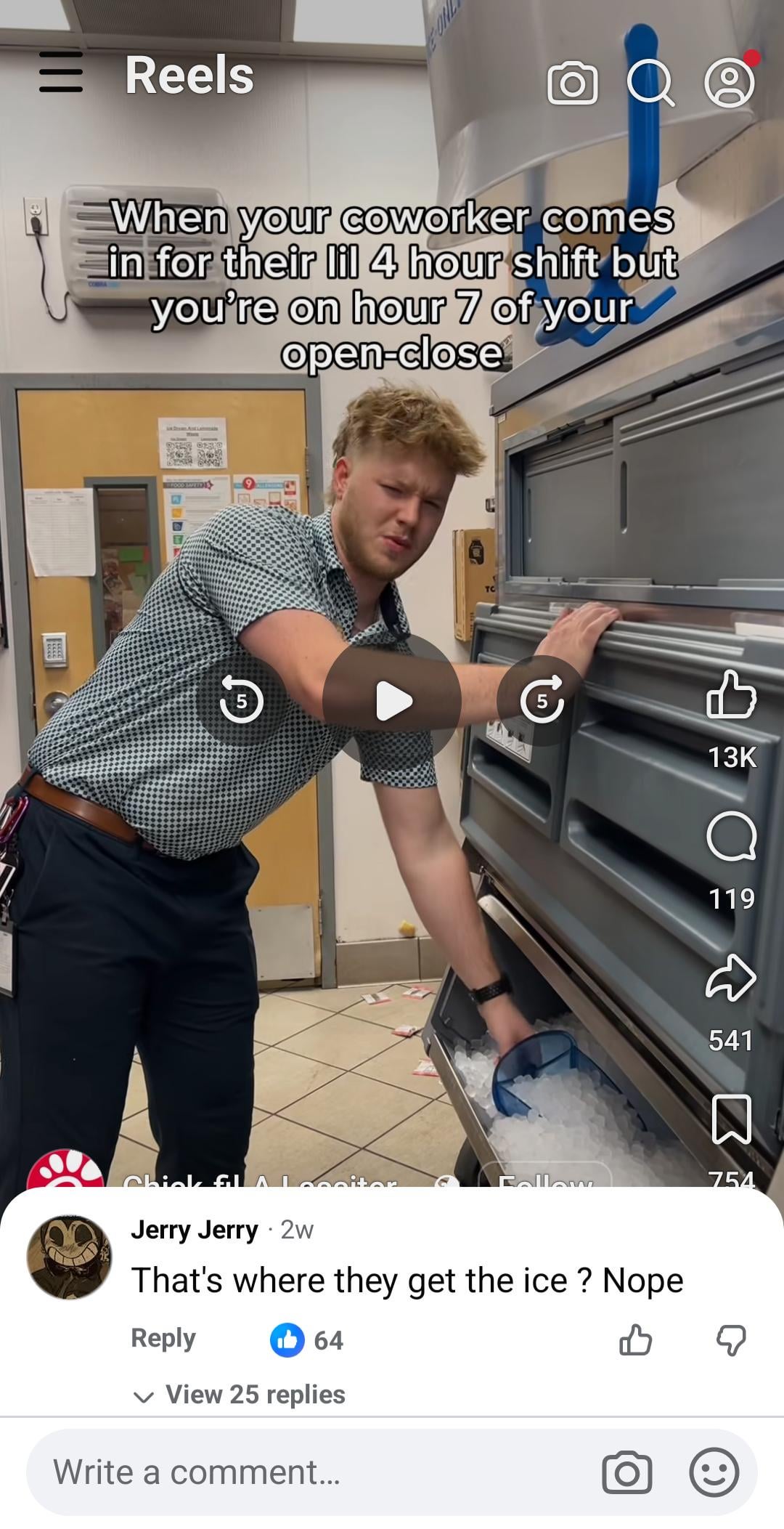 Jerry thinks ice from commercial kitchens come from the ice tray in the freezer