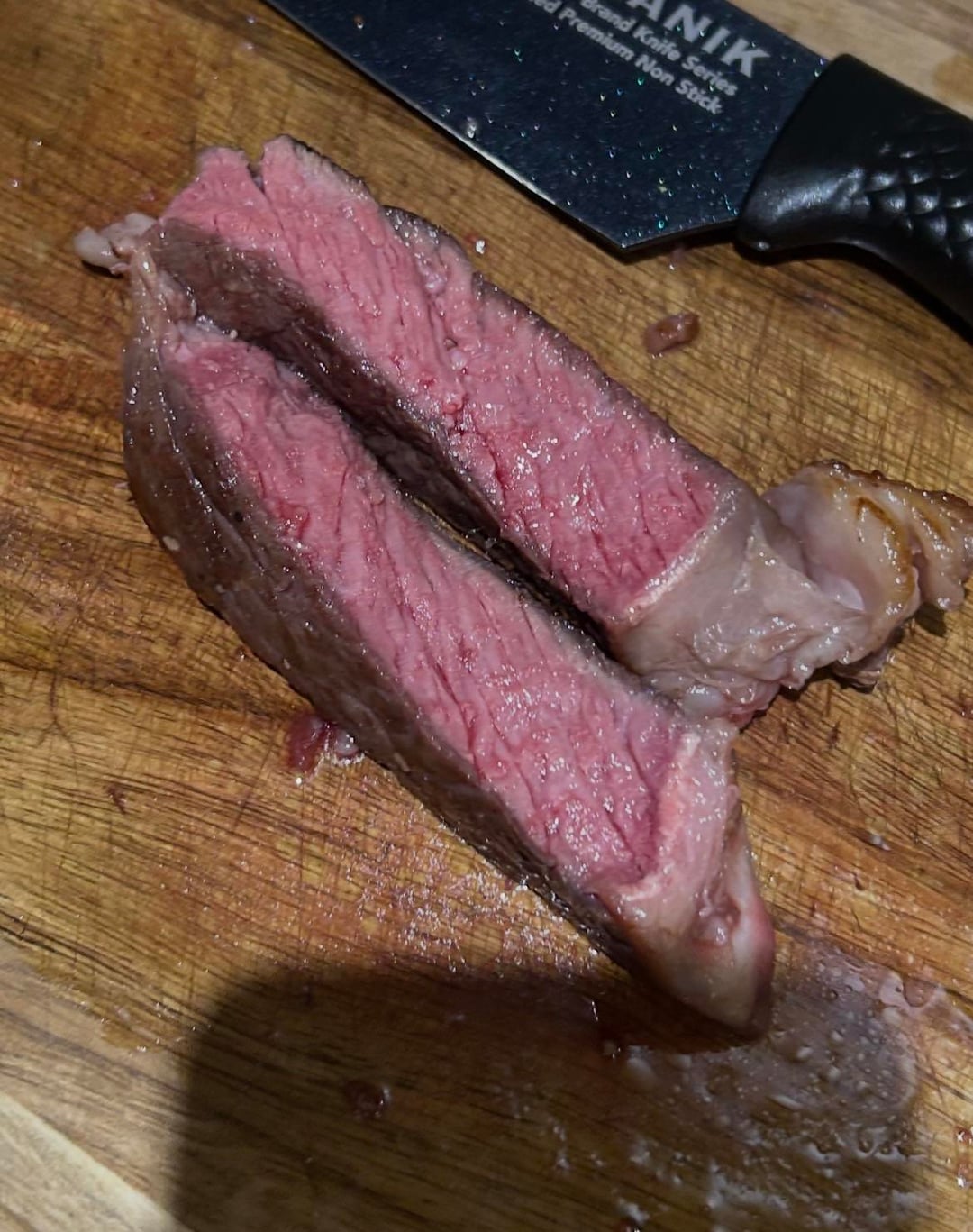Cooked at 56c for 2.5 hours, rested for 10 minutes and then seared in a stainless steel pan. The sear wasn’t my best and I think I should’ve butter basted it as well by Narrow-Machine129 Dining and Cooking