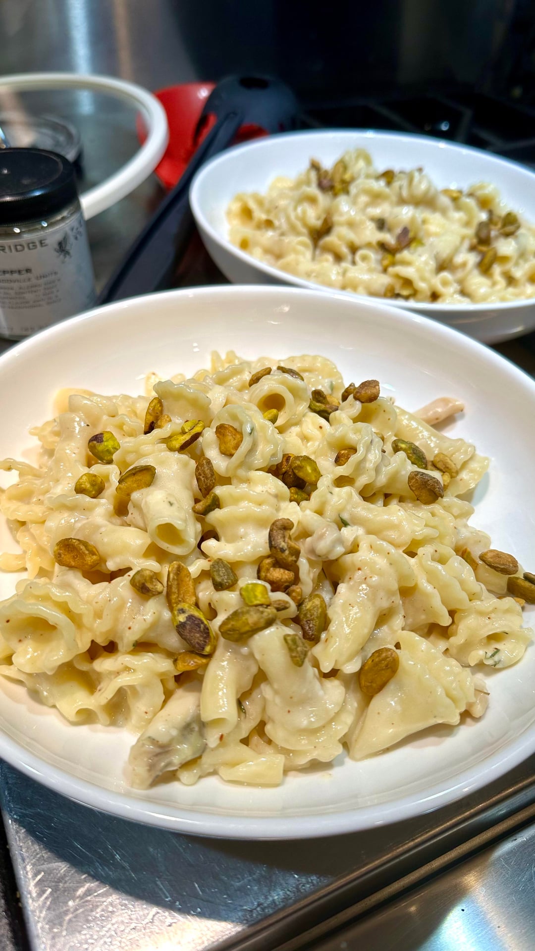 – Pasta with razor clams, a quick Romano cream sauce, pistachios and Aleppo. Even good as leftovers the next day.
