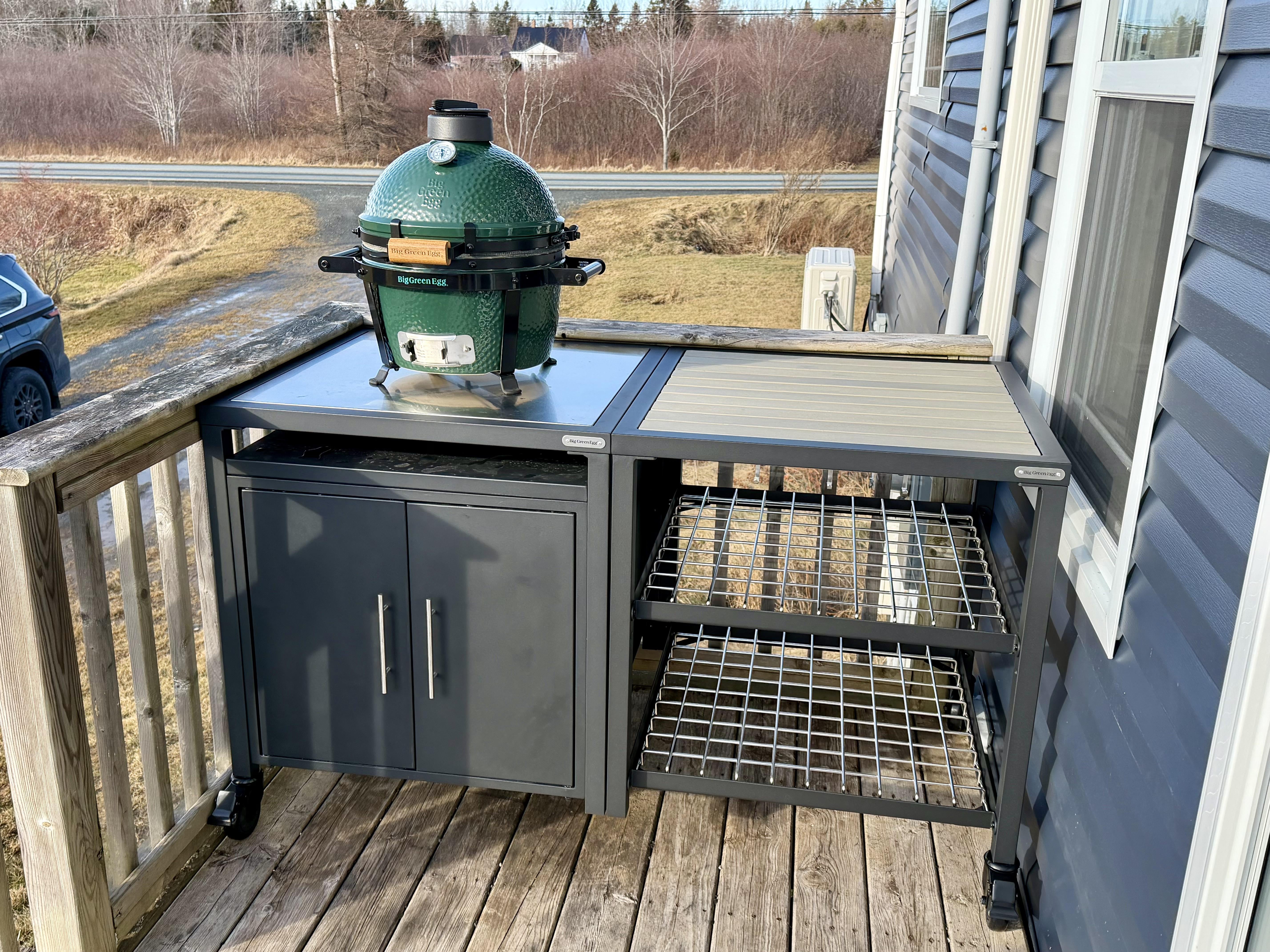 I have recently switched from team red to team green! I have an XL in a corner next with another cabinet and table. This spring, I’ll be building a bigger deck here with a covered roof and joining them all together.