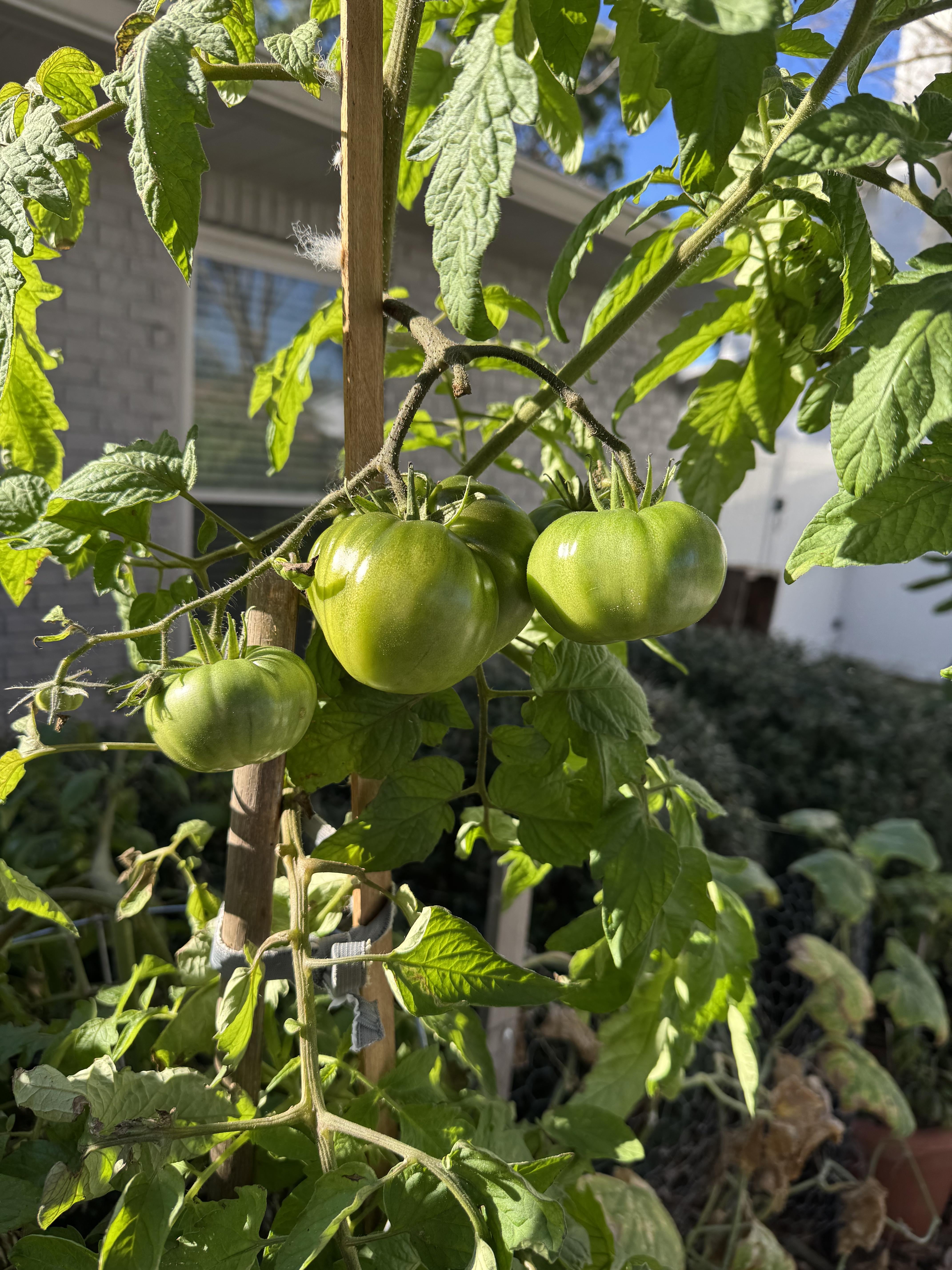 In cooler weather it takes longer. Also the bigger the tomato the longer it takes. Patience. It’s worth it. This thing will go nuts in the spring.