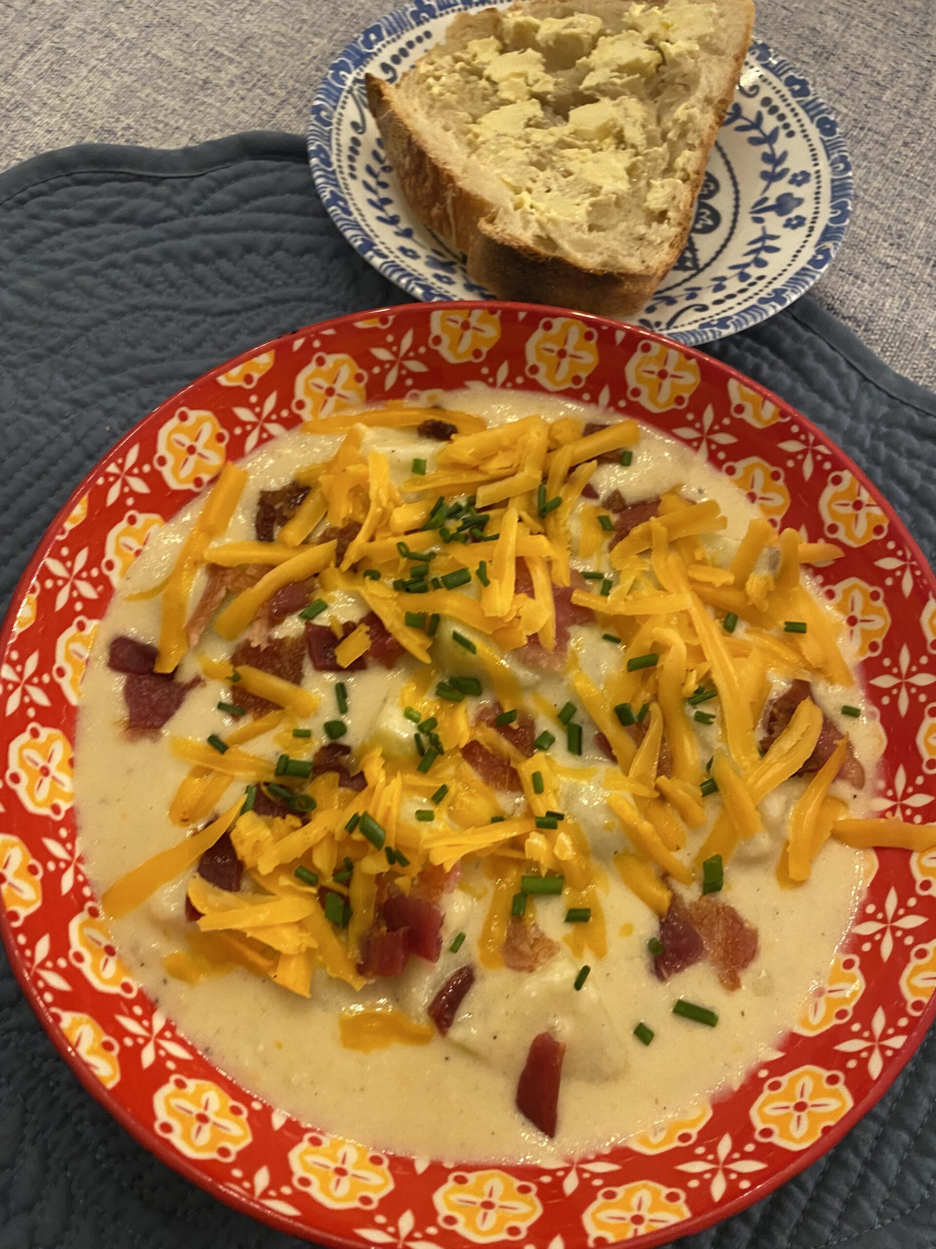 Loaded Baked Potato Soup with homemade sourdough bread
