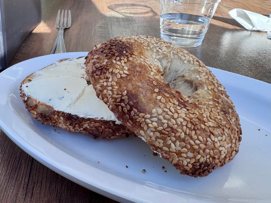 C&H Bagels in Highland Park is a 95% approximation of Courage, without the wait and a fraction-ish of the cost. Slow fermentation method, chewy yet crispy on outside. We got 6 loose bagels to go for $15 as well as one toasted sesame with cc ($5) and a huge bagel breakfast sandwich served with rosemary potatoes for $16. Friendly service, convenient location.