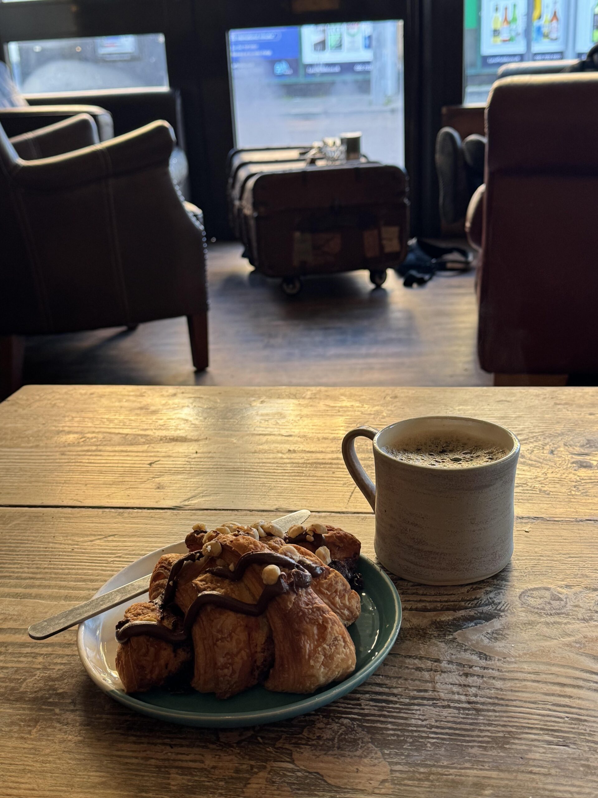 Simple start to a Saturday with this gem of a place, literally two minute walk from me, choc hazelnut croissant and always a good brew on batch,by Fixedgearandfood Dining and Cooking