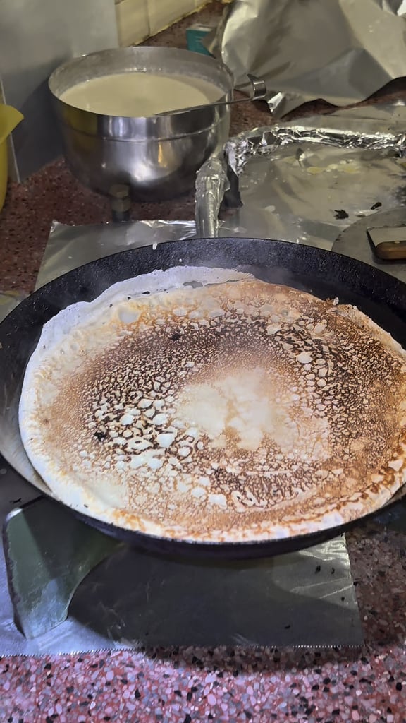 Too thin to be considered a Dutch pancake. Needs to be thicker, like 3 or 4 mm so it’s both crunchy on the outside and fluffy/bouncy on the inside…