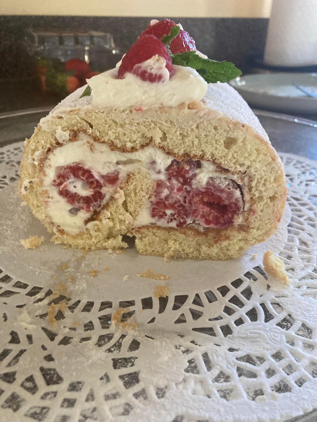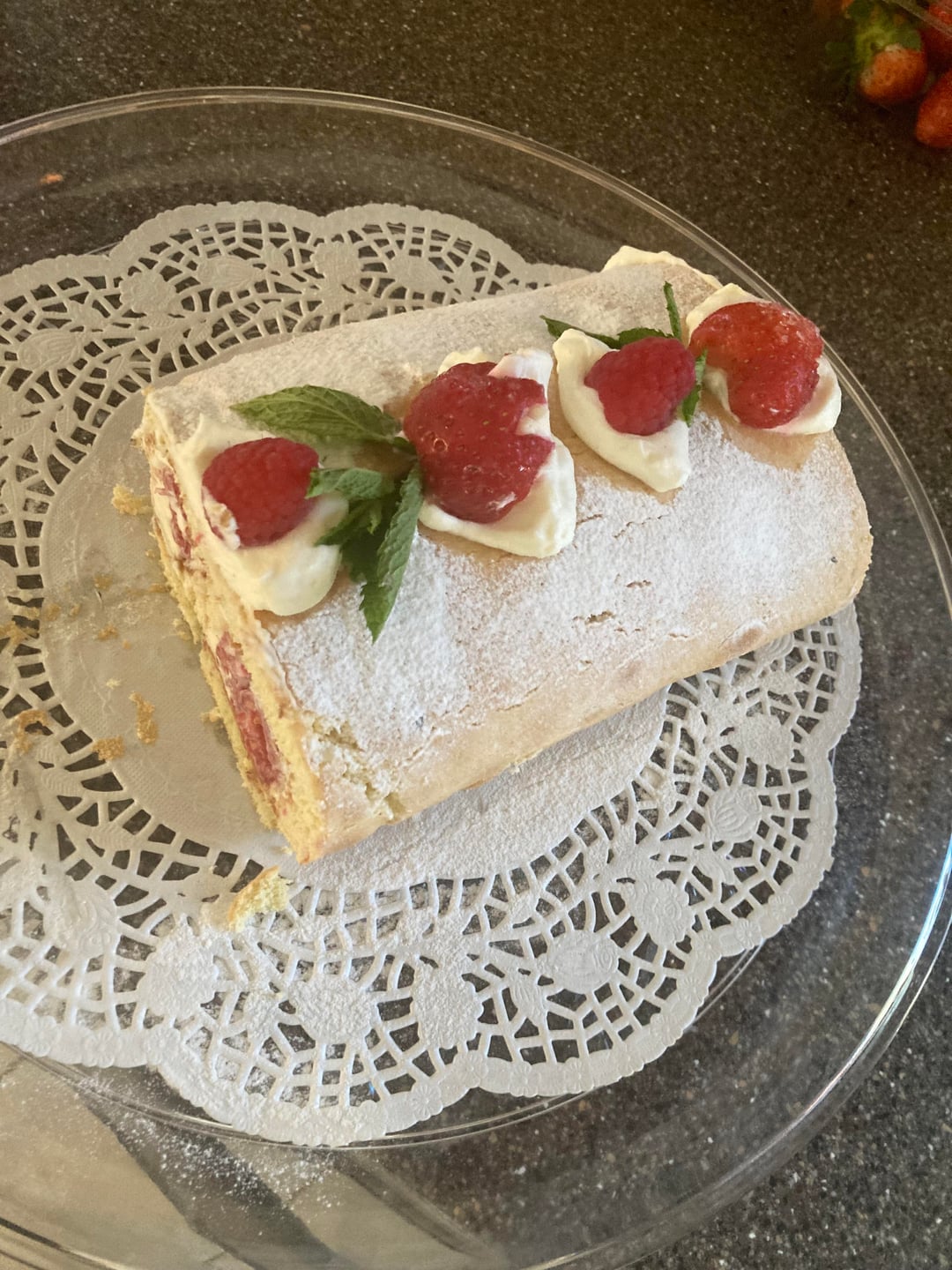 This looks so tasty! A swiss roll with thickened custard or is it cream inside? And raspberries and strawberries, super delicious!