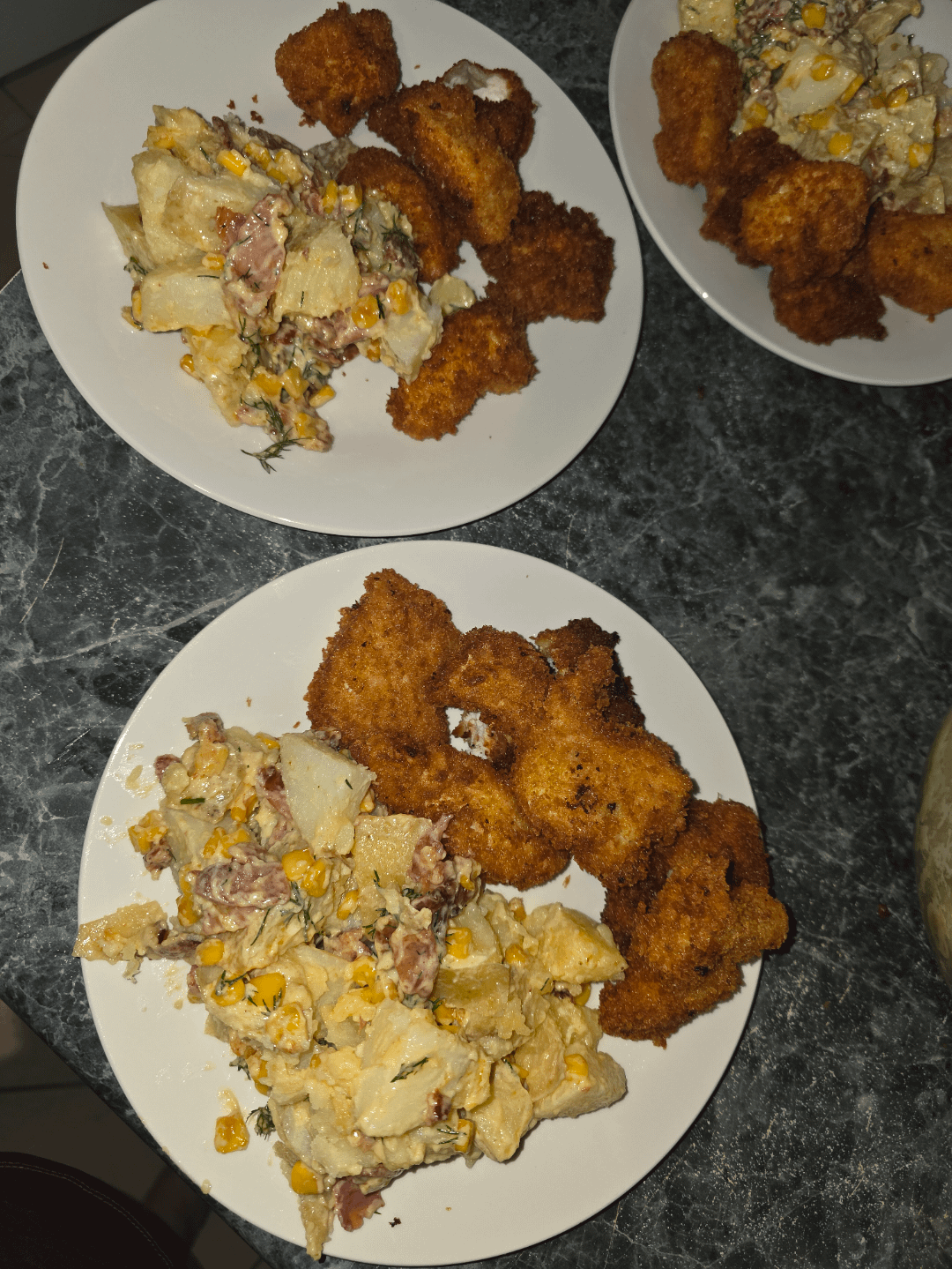 My first home made nuggies in years. Mental health and autism has been kicking my ass lately and I’ve been struggling to cook for my family. Proud of myself! Nuggies with Matt Preston’s maple bacon and corn potato salad 🤤