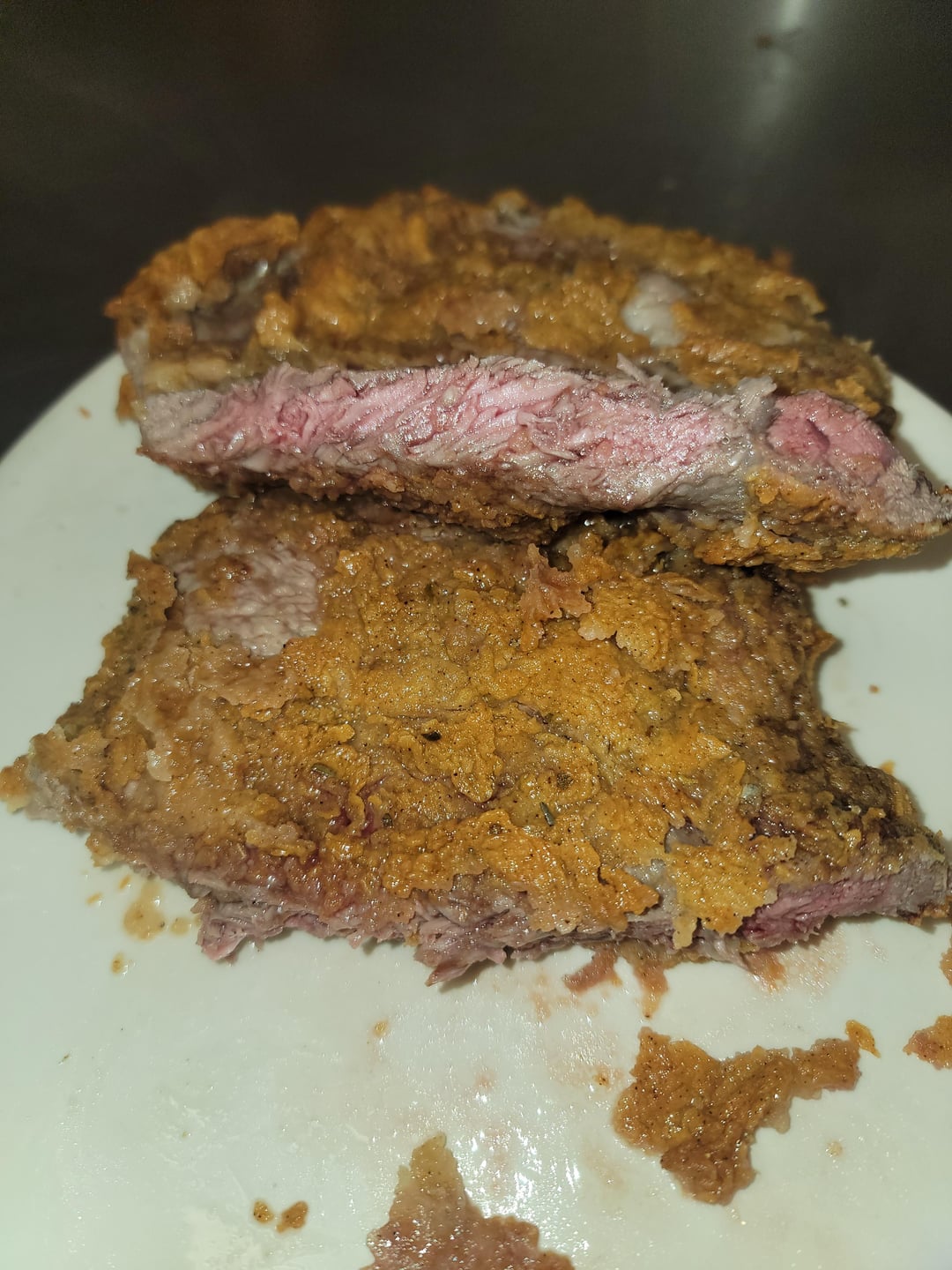 I think I’d still put it through a cuber or beat it with a hammer before breading. It’s an interesting experiment but probably a waste of a good ribeye.