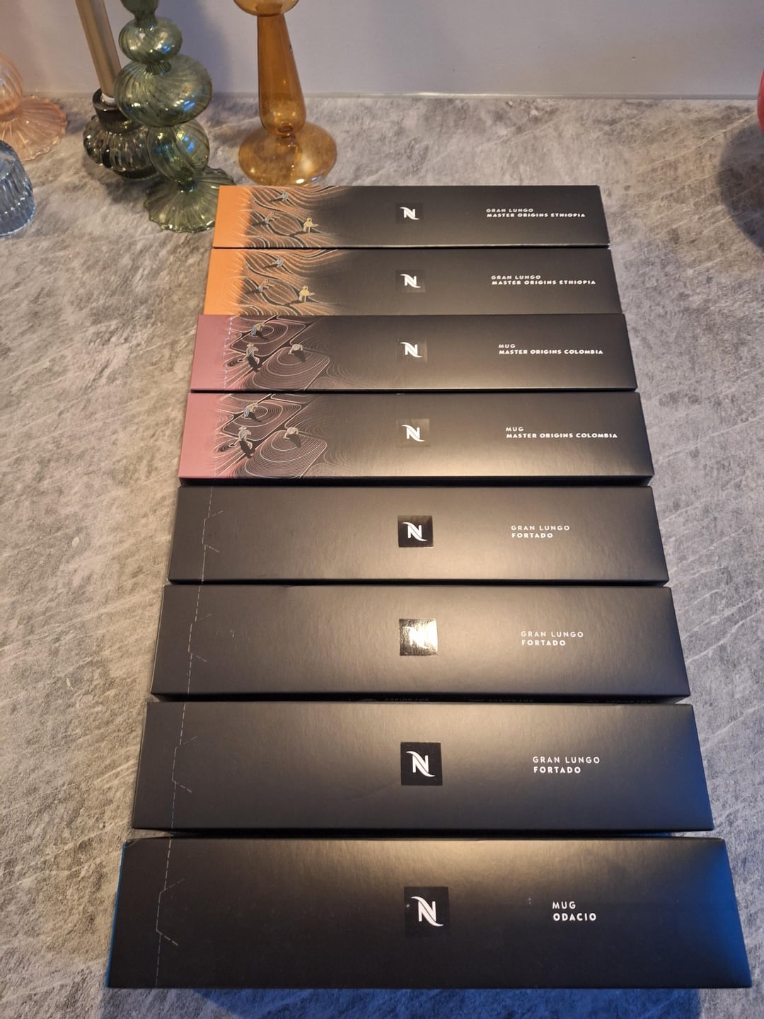 Wij zitten met een beetje een luxe probleem: ons Nespresso Vertuo apparaat heeft het helaas begeven, maar we hebben nog 8 ongeopende doosjes cups staan die nu niks meer doen behalve ons aankijken in de kast.