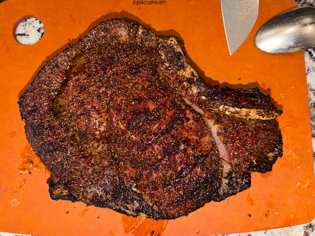 Seasoned with REO spices seasoned salt and 16 mesh black pepper. Smoked at 225 till it hit 125. Let it rest for 10 minutes. Then seared on my PK grill.