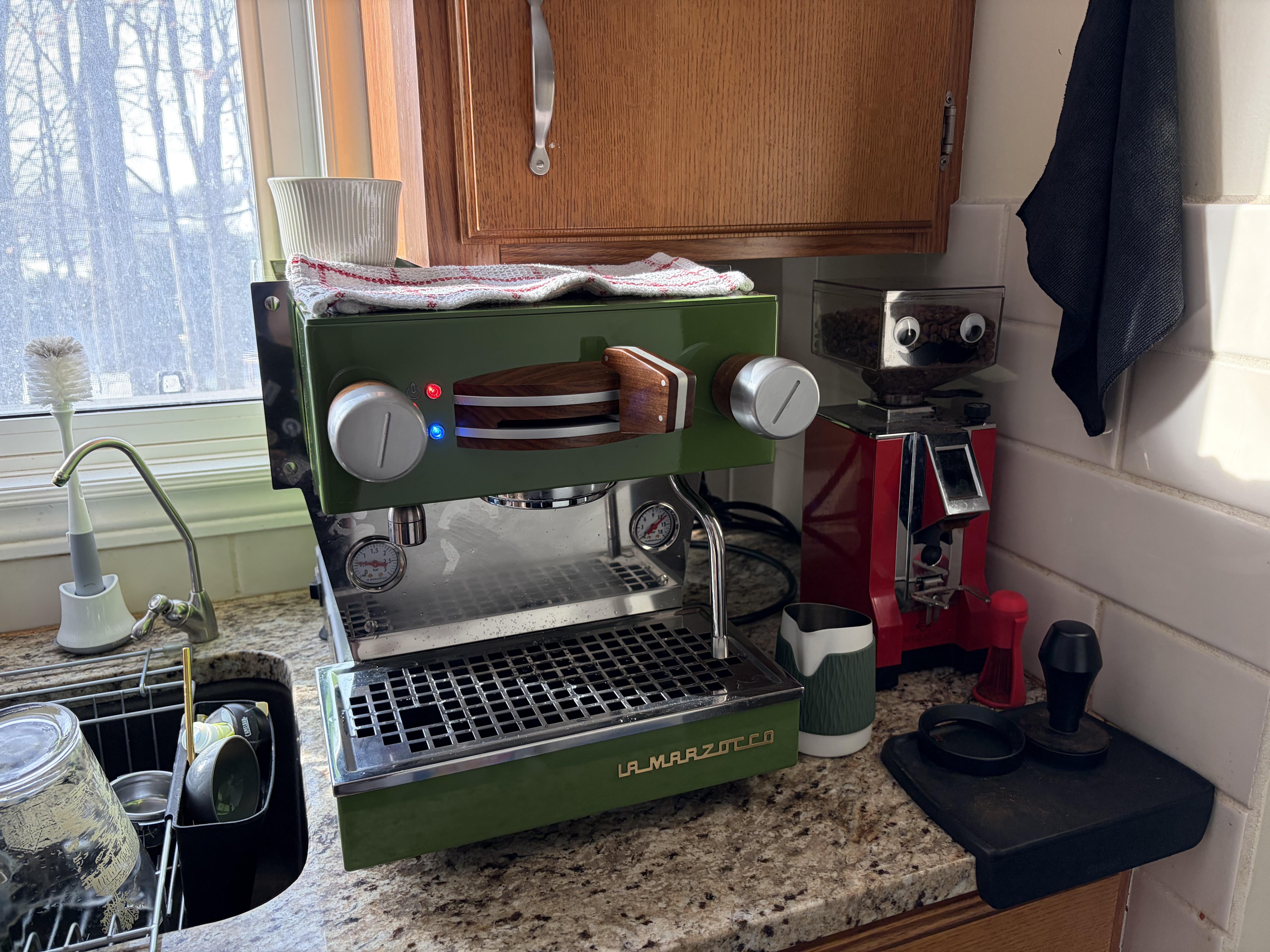 3k Canadian for an unused florentine green limited edition LMLM. A new espresso machine was not something I planned to spend money on but this was too good a deal to say no. It was my dream machine (this colour scheme) when it came out but it was never a realistic amount for me to spend on a machine. I watched it sell out everywhere… literally couldn’t have gotten any luckier to find one for so cheap. I guess I gotta sell my Appartamento now!