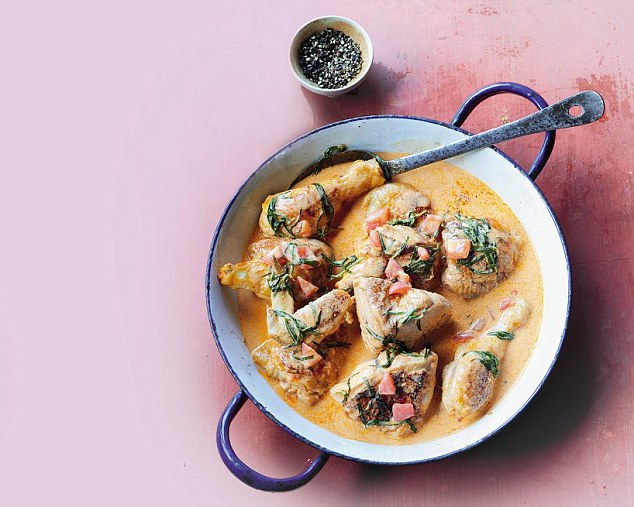 Heat the olive oil in a lidded ovenproof frying pan or casserole over a medium to high heat. Season the chicken and fry to a golden crisp all over. Remove the chicken, tip out the fat and wipe the pan clean.